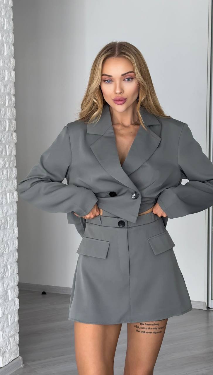 M/L: Švarko ilgis 42cm, krūtinė 52cm x 2, rankovės 62cm. Sijono ilgis 41cm, liemuo 37cm x 2.