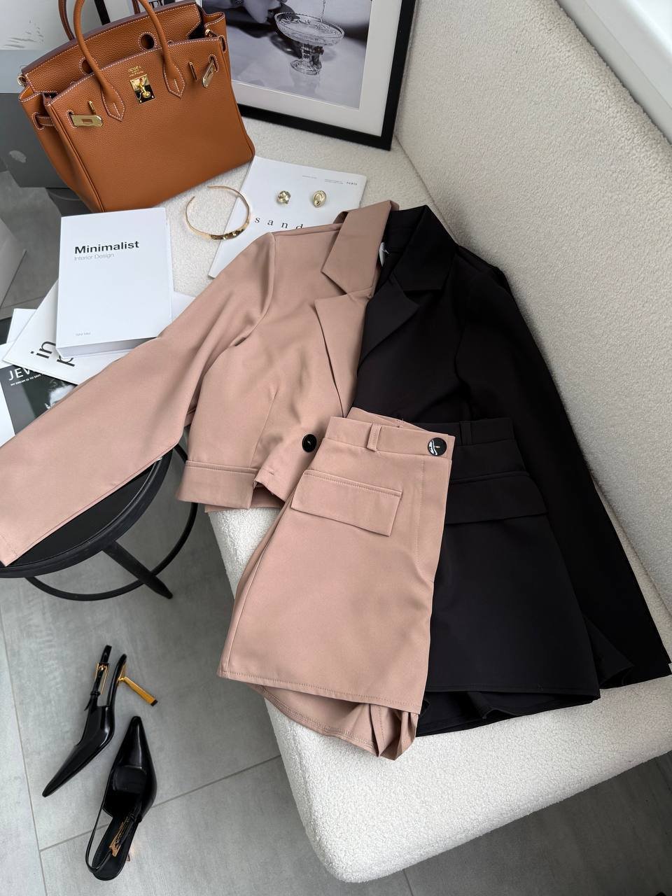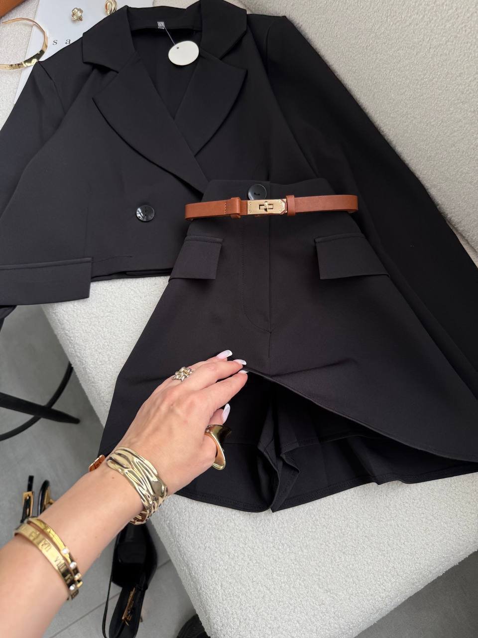 M/L: Švarko ilgis 42cm, krūtinė 52cm x 2, rankovės 62cm. Sijono ilgis 41cm, liemuo 37cm x 2.