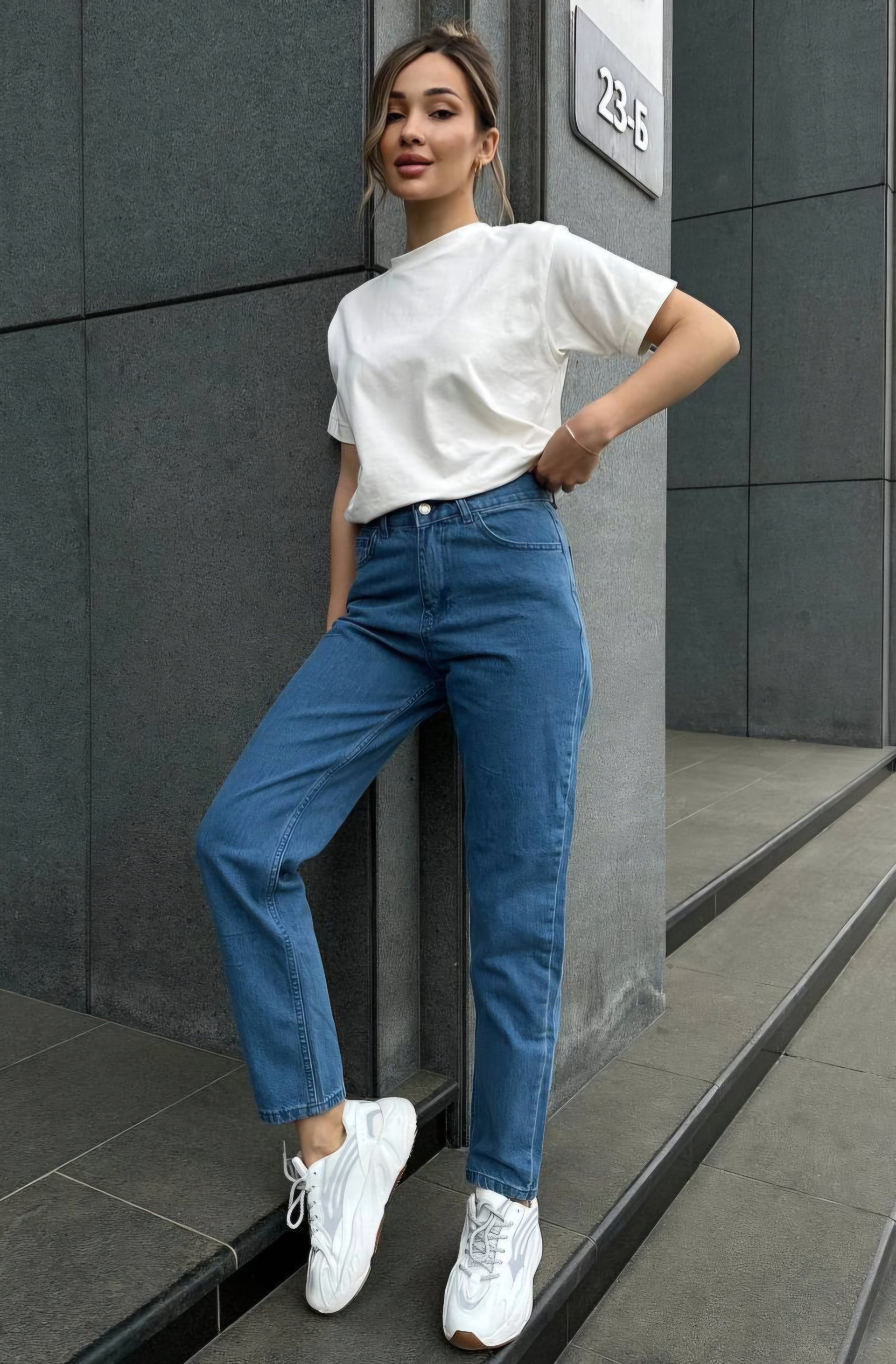 98% medvilnė, 2% elastanas. MOM stiliaus džinsai.