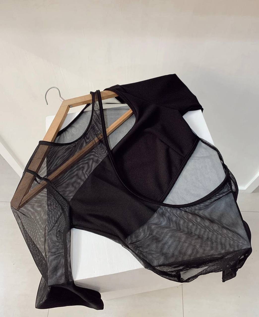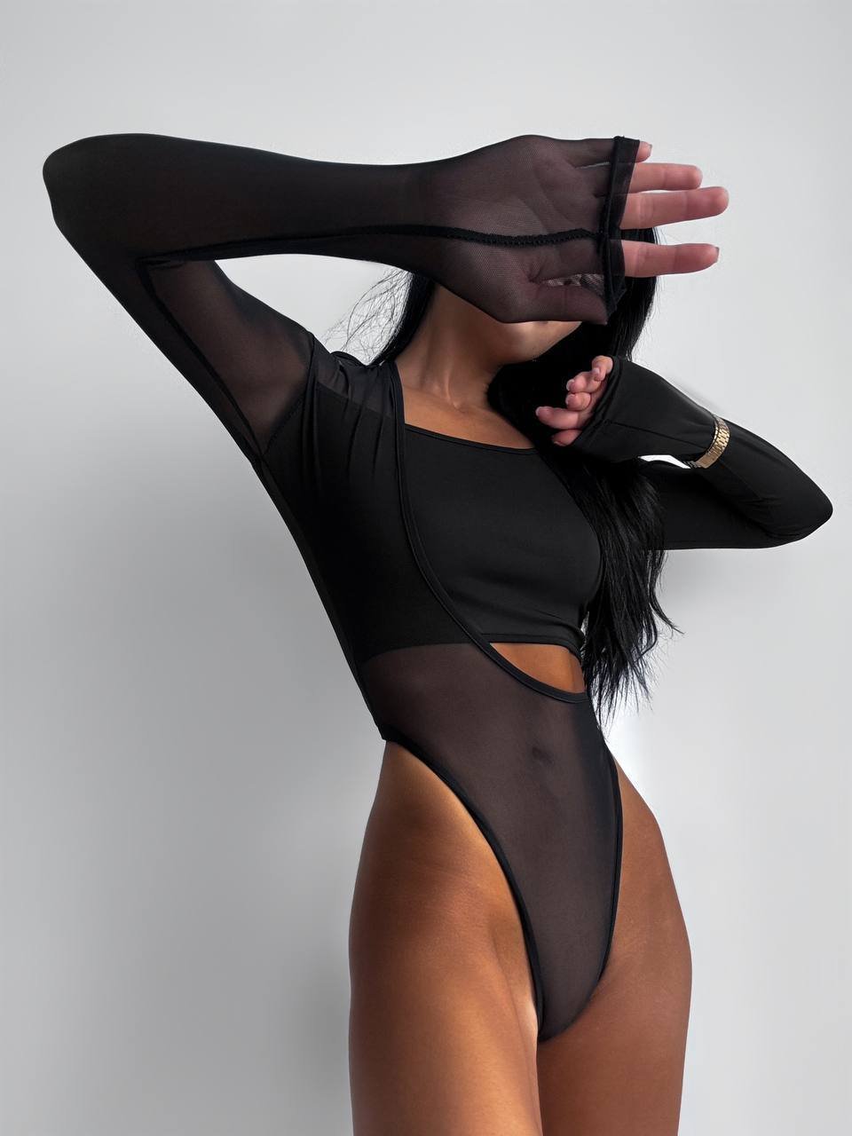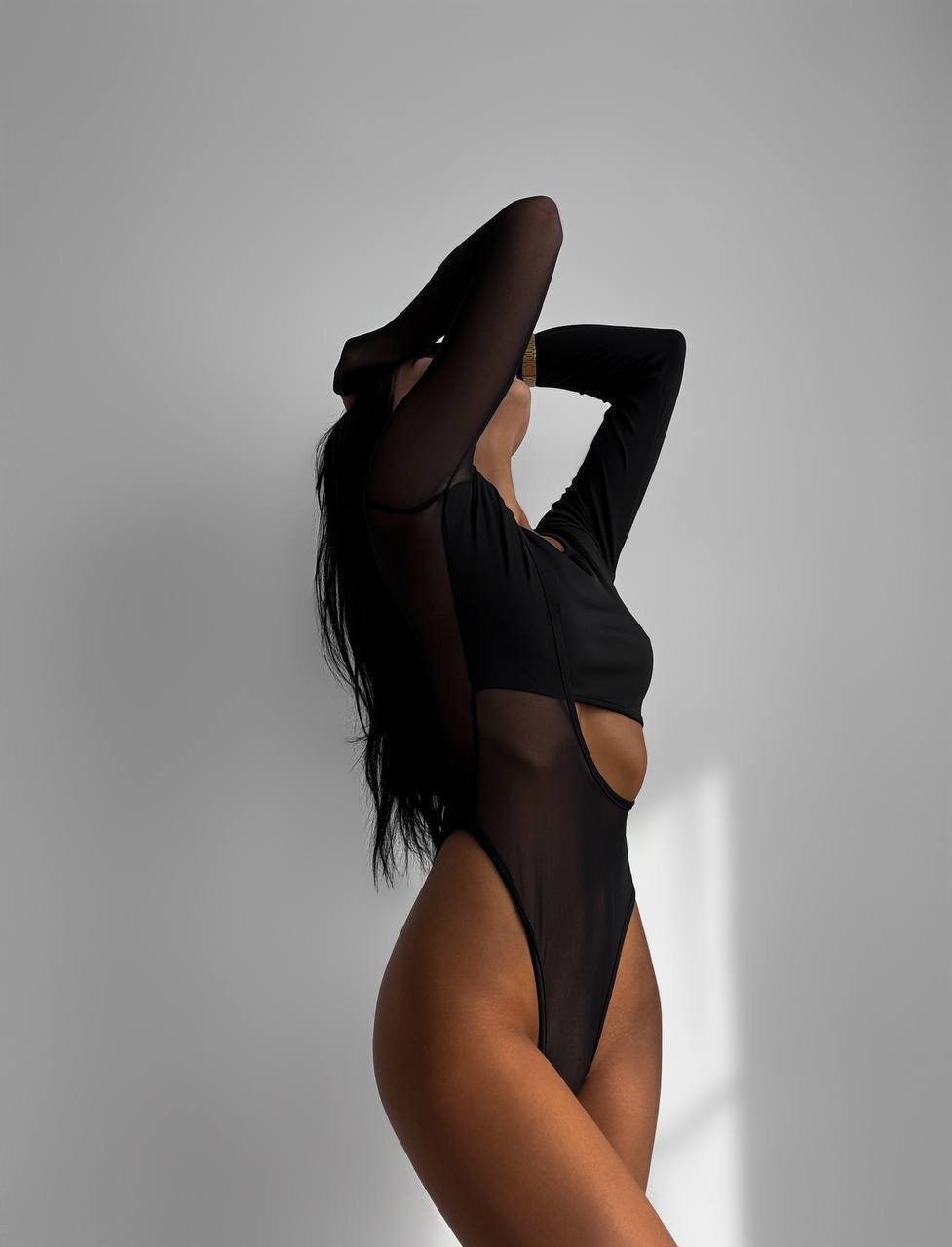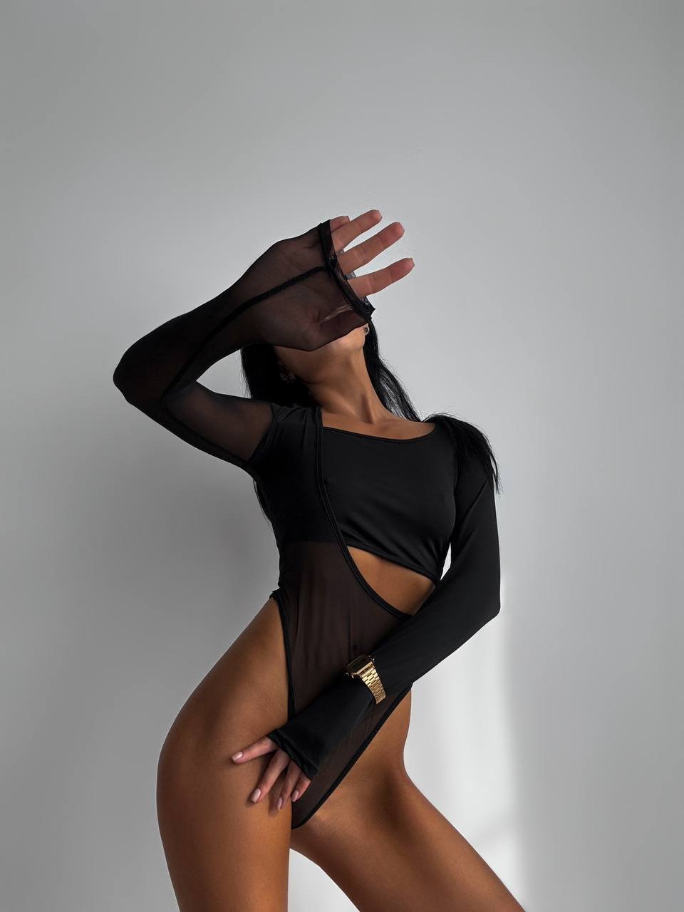 Išskirtinio dizaino bodis. Ilgos rankovės. Apačioje susegamas. Tamprios medžiagos.