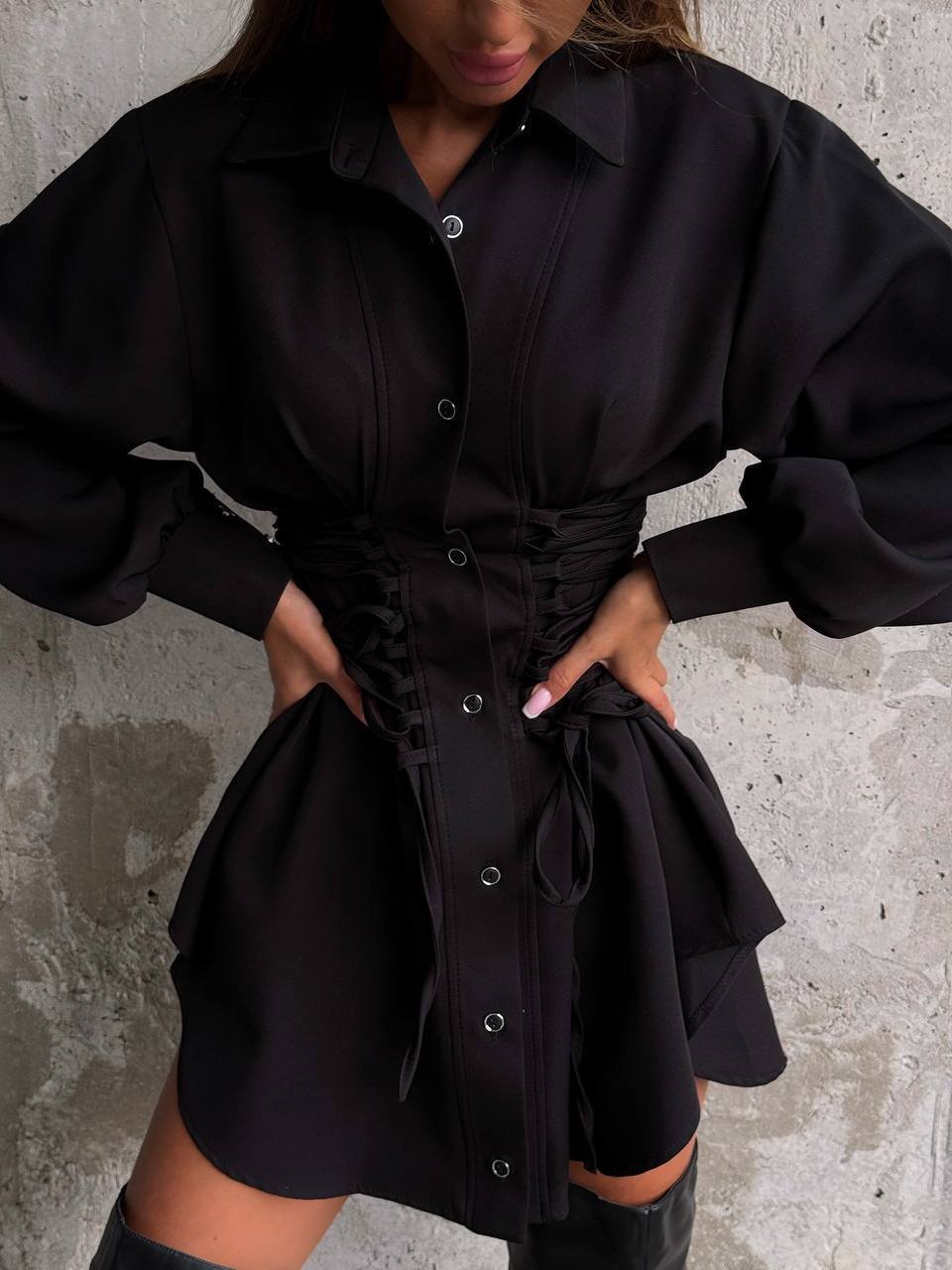 Išskirtinio dizaino marškiniai. Užsegami sagomis. Šonuose susivarsto. Ilgos rankovės. Turime dviejų spalvų: chaki, juodos.