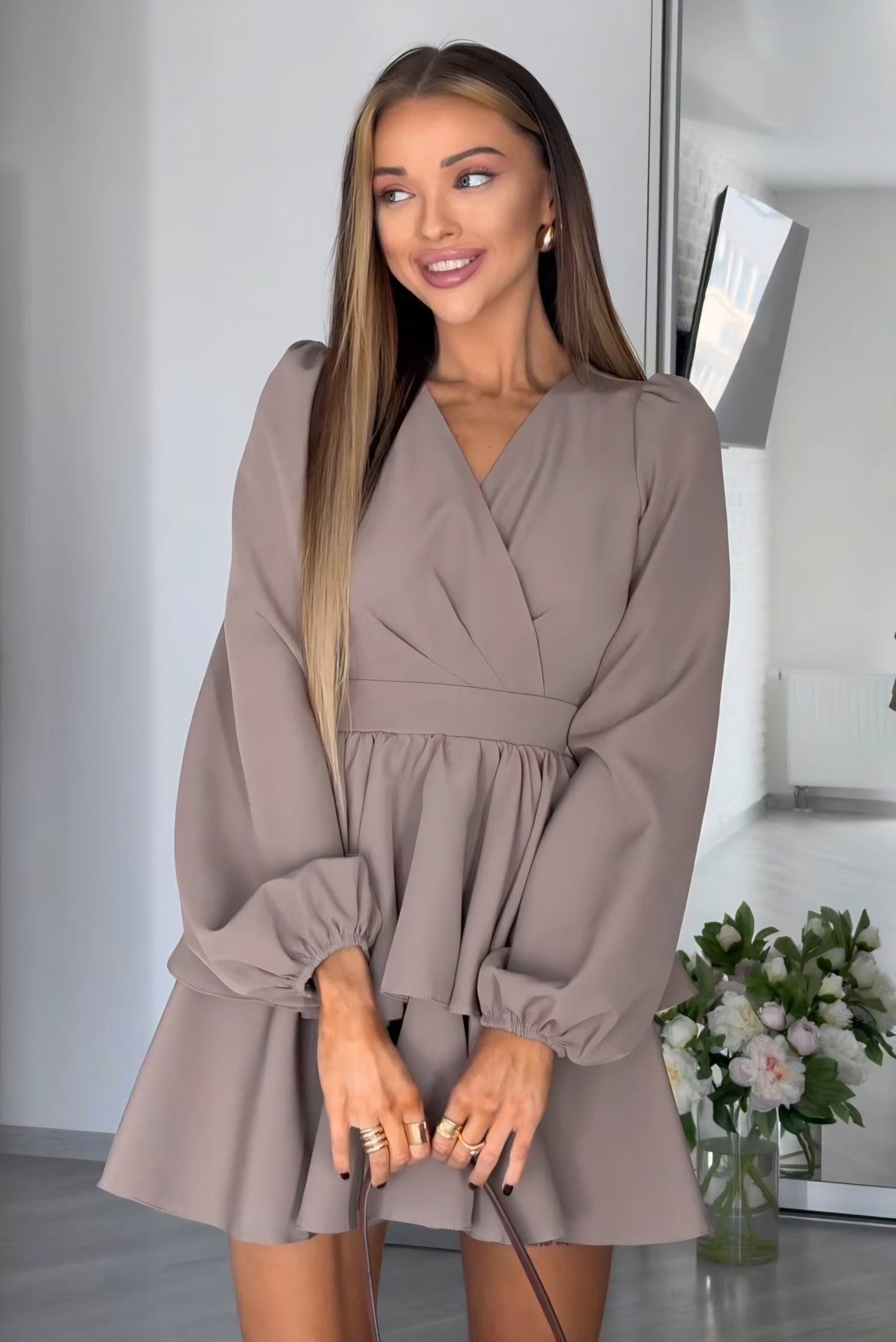 S/M: ilgis 81cm, krūtinė 44cm x 2, liemuo 35cm x 2, rankovės 67cm. Nugaroje yra guma, todėl liemuo dar tempiasi.