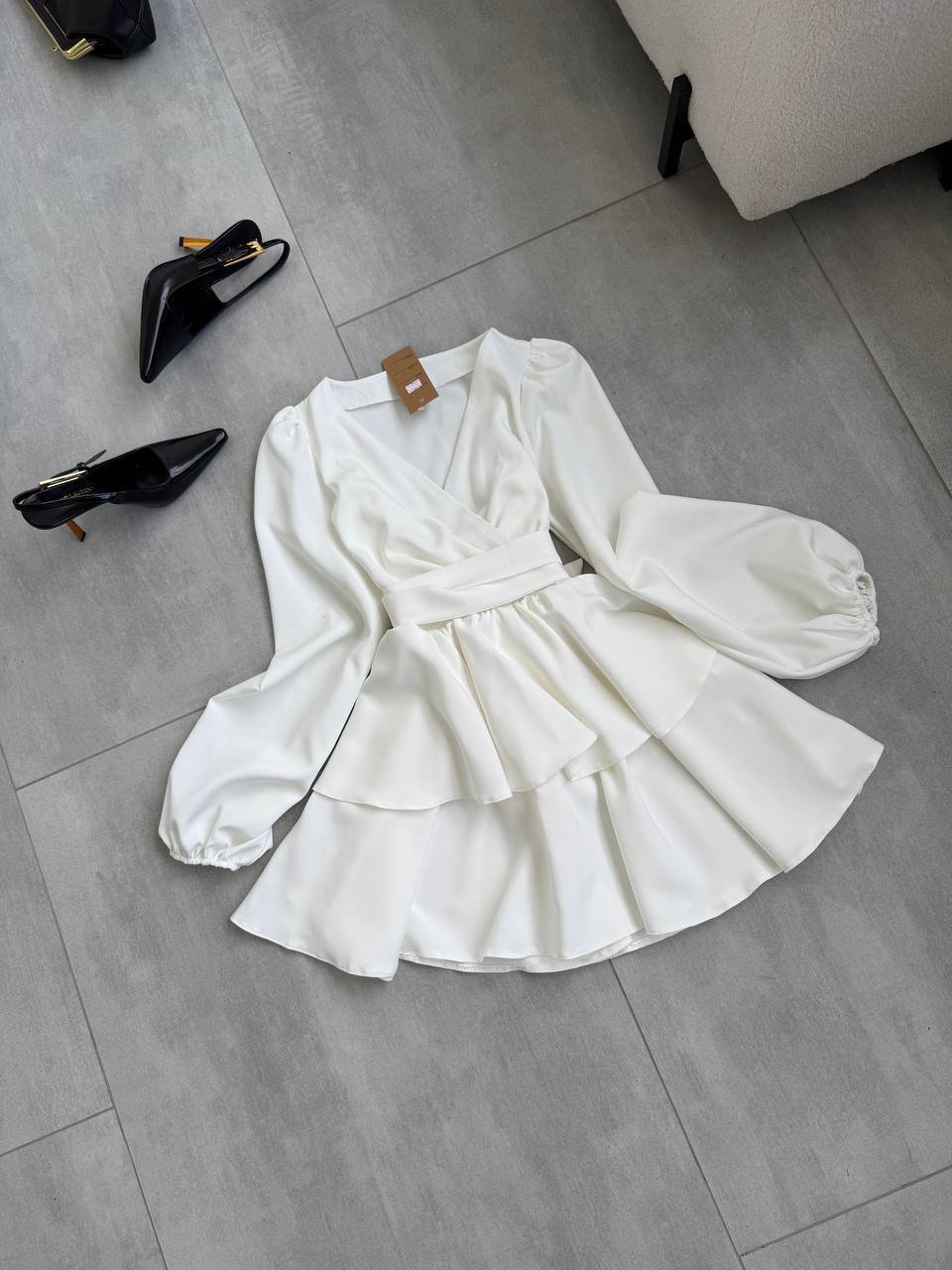 S/M: ilgis 81cm, krūtinė 44cm x 2, liemuo 35cm x 2, rankovės 67cm. Nugaroje yra guma, todėl liemuo dar tempiasi.