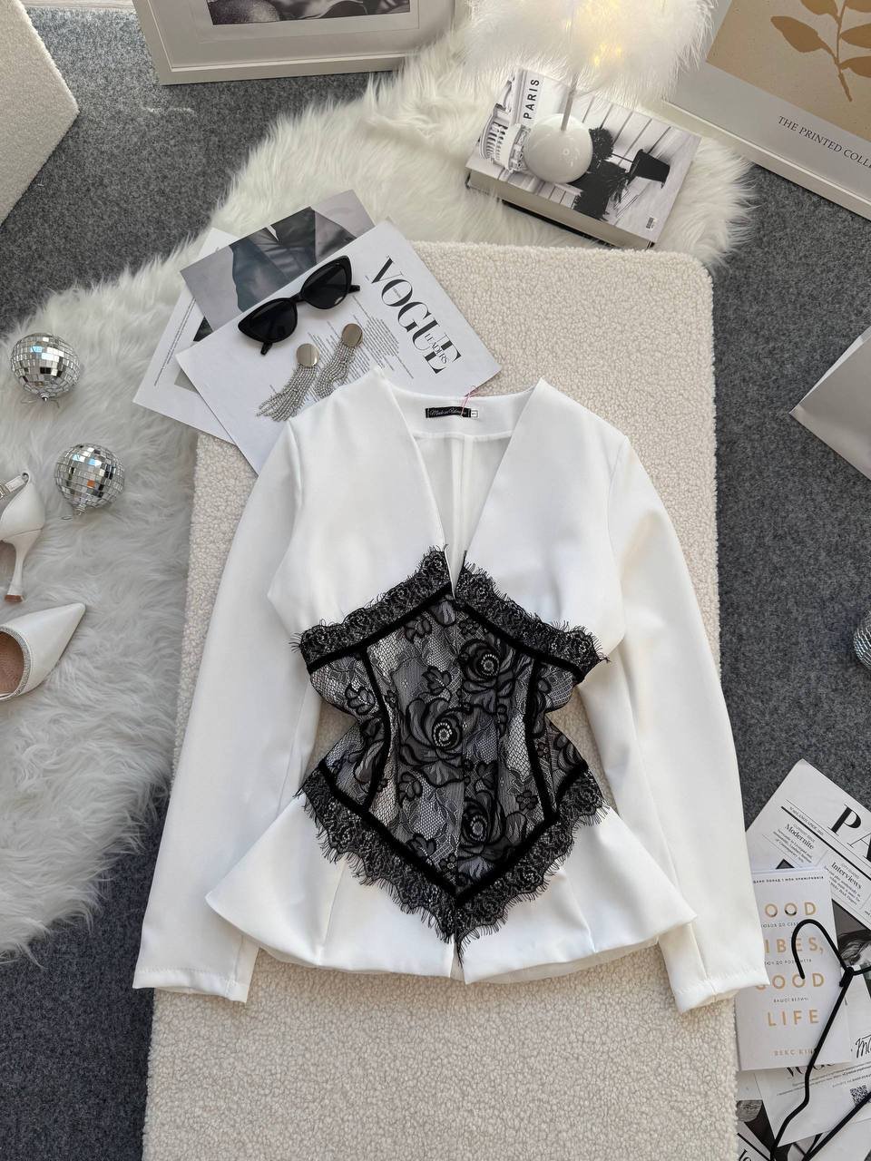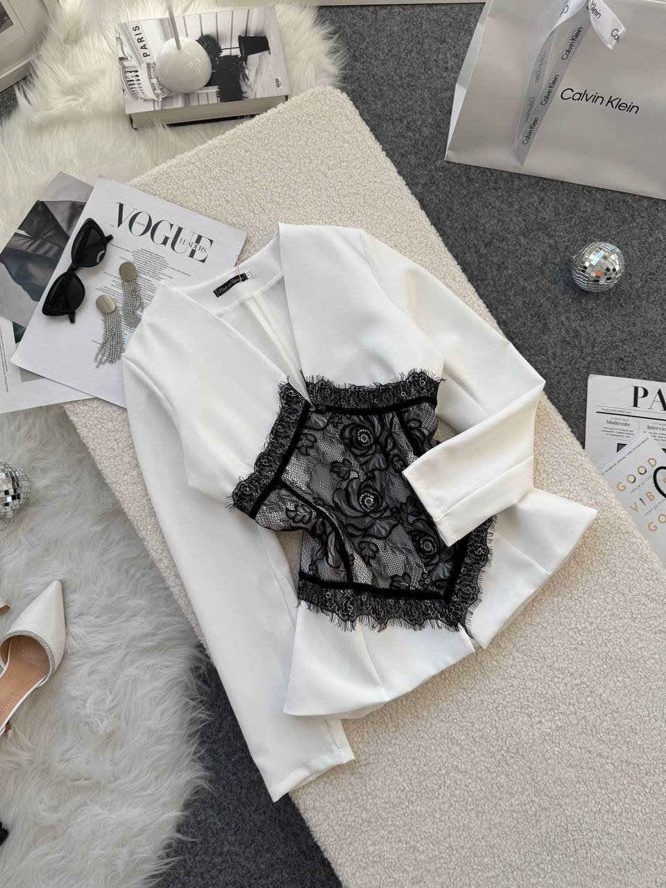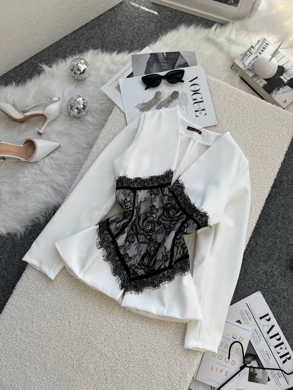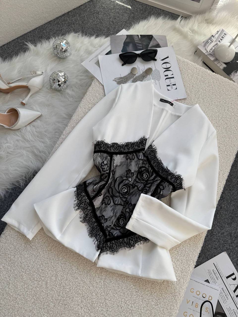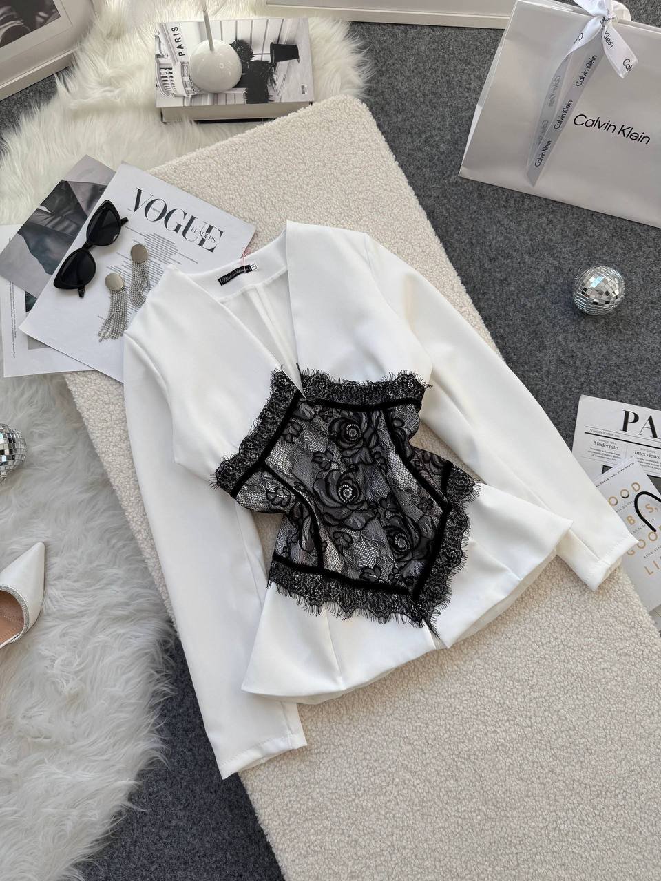 Ilgis 59cm, krūtinė 48cm x 2, liemuo 40cm x 2, rankovės 61cm.