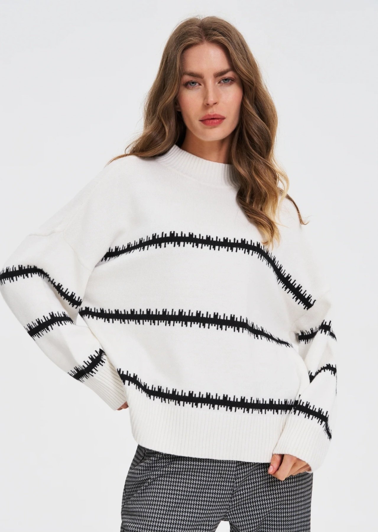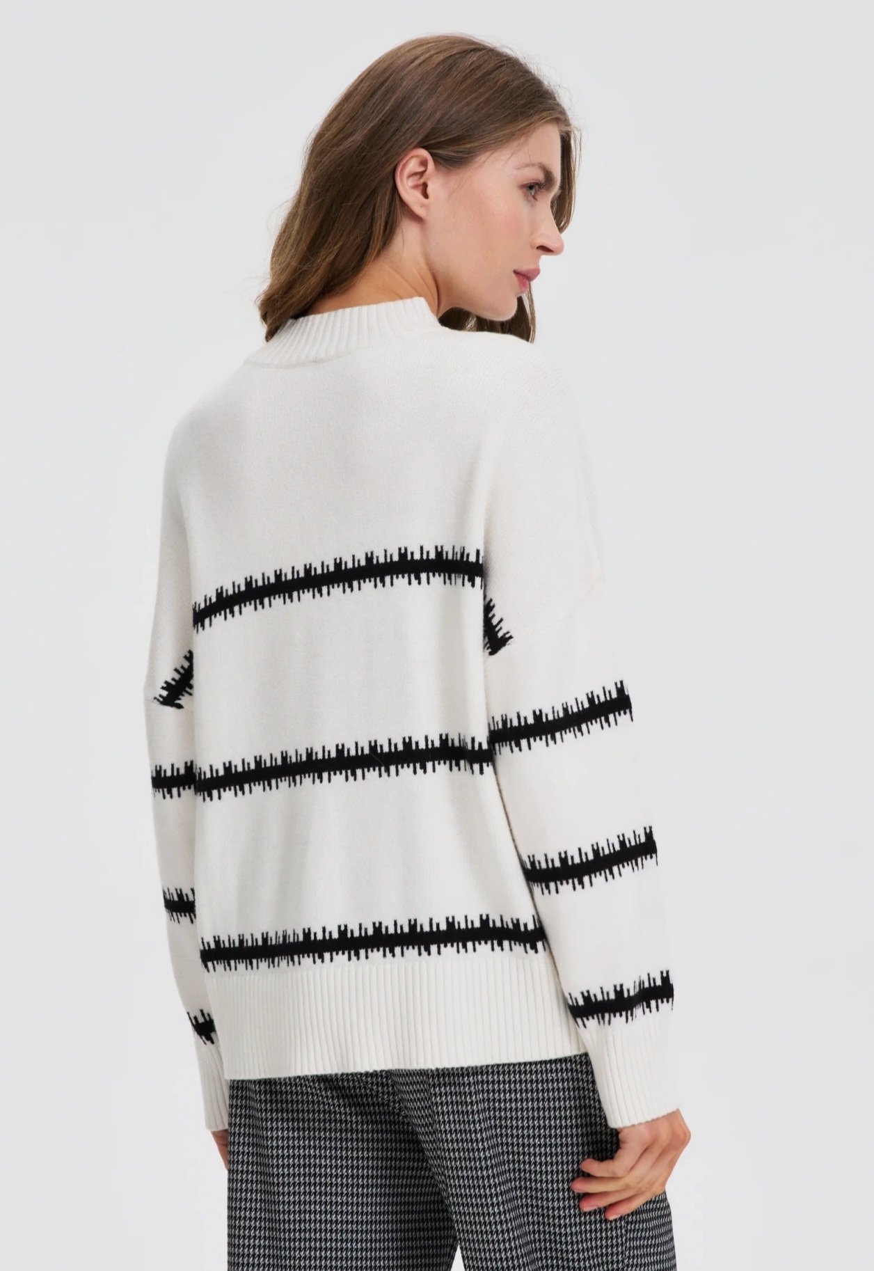 Megztinis šiek tiek aukštesniu kaklu. Laisvesnio modelio. Ilgos rankovės. Jaukus, šiltas.