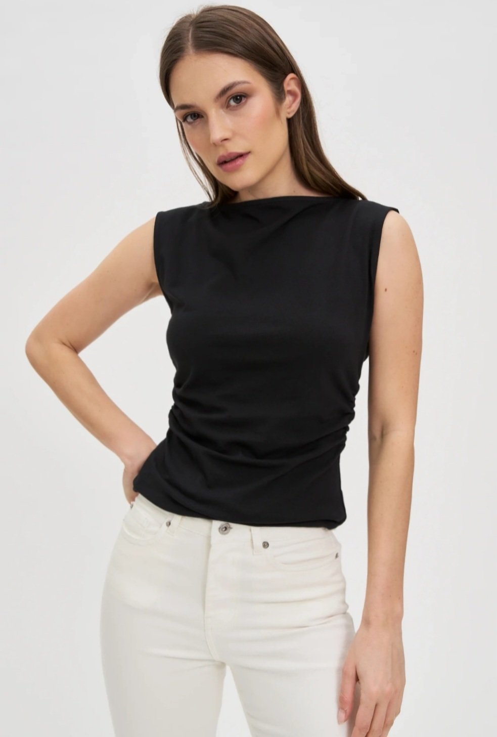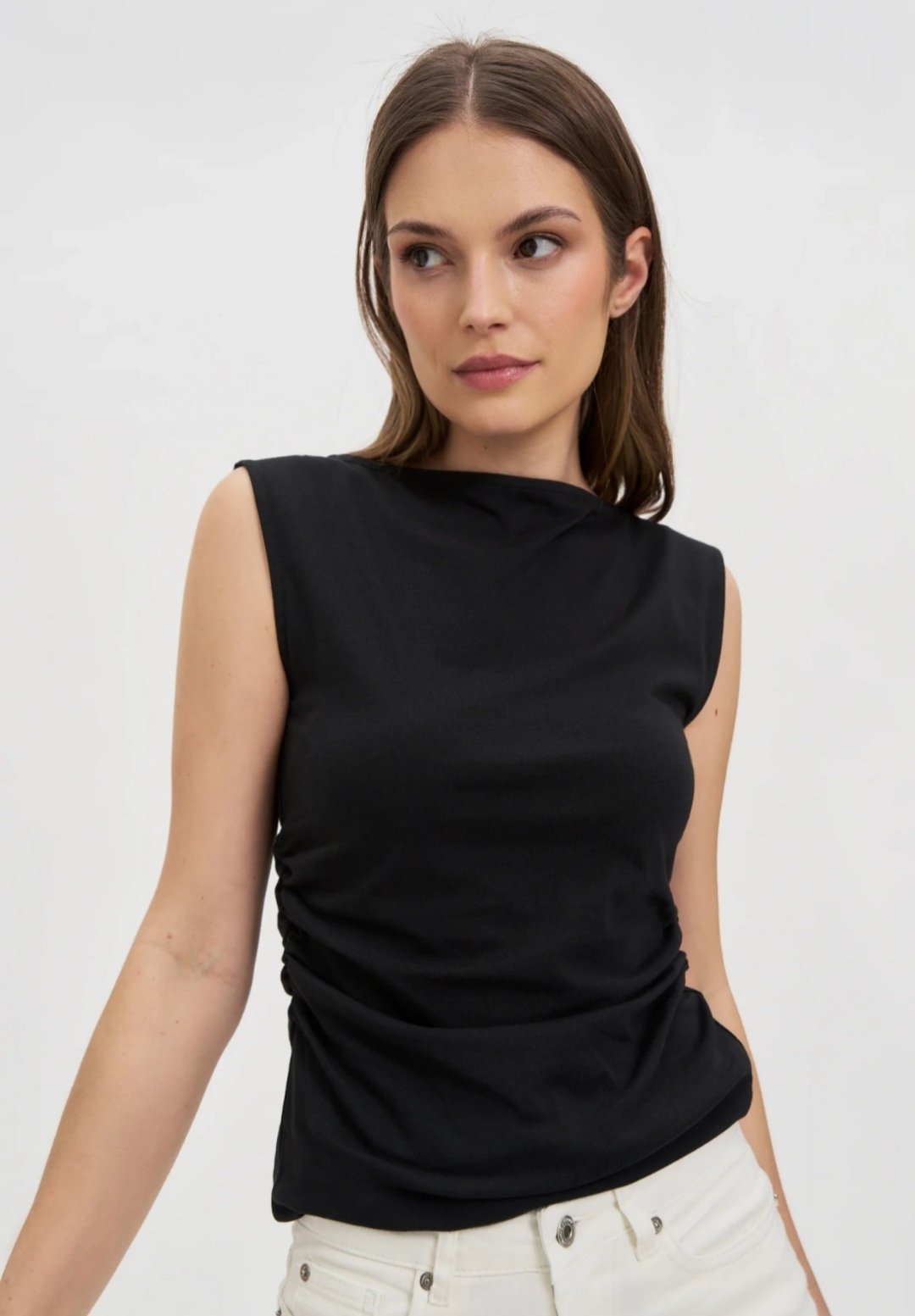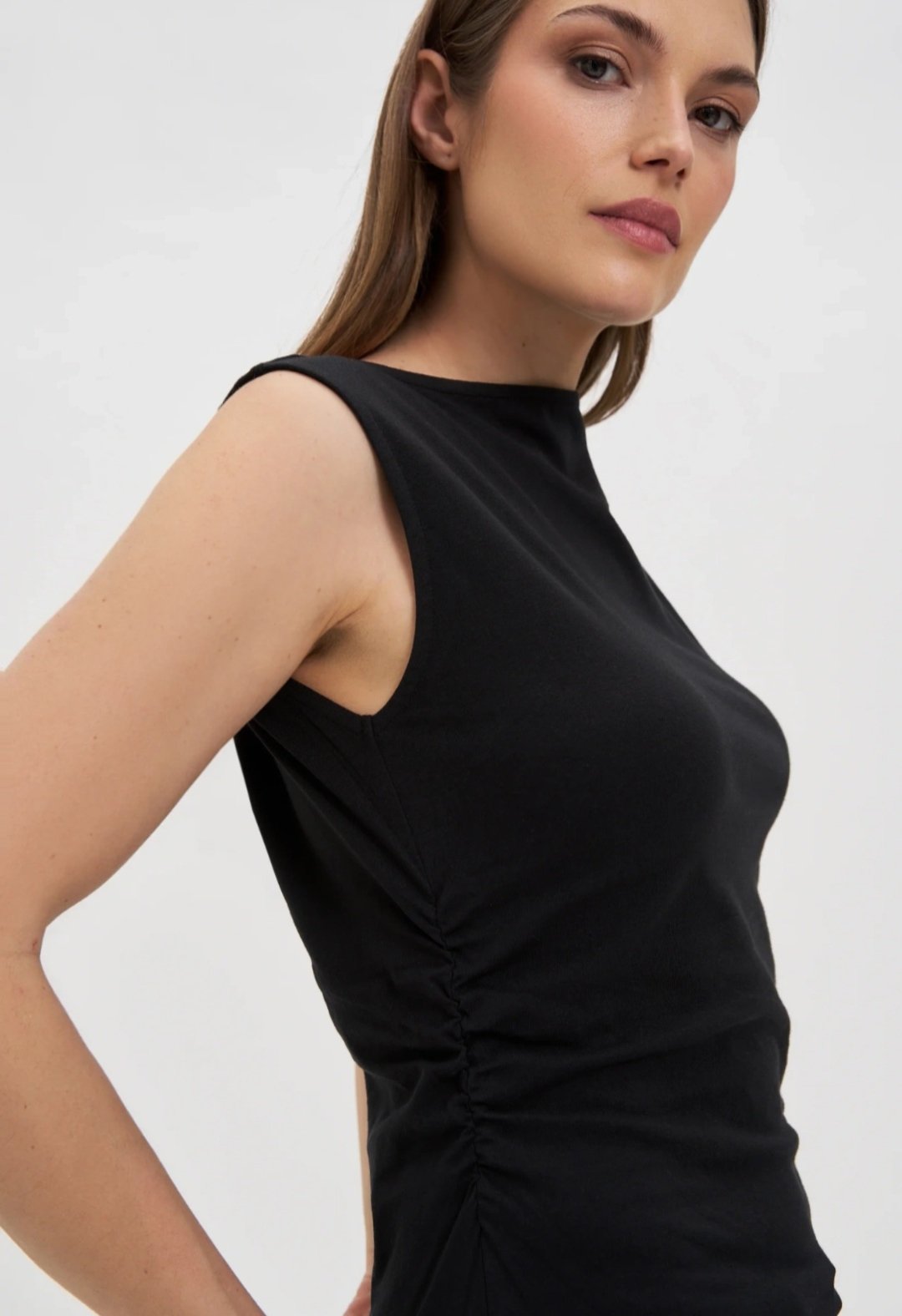 Medvilninė palaidinė. Iliemenuota. Juodos spalvos. Šonuose yra paraukimai.