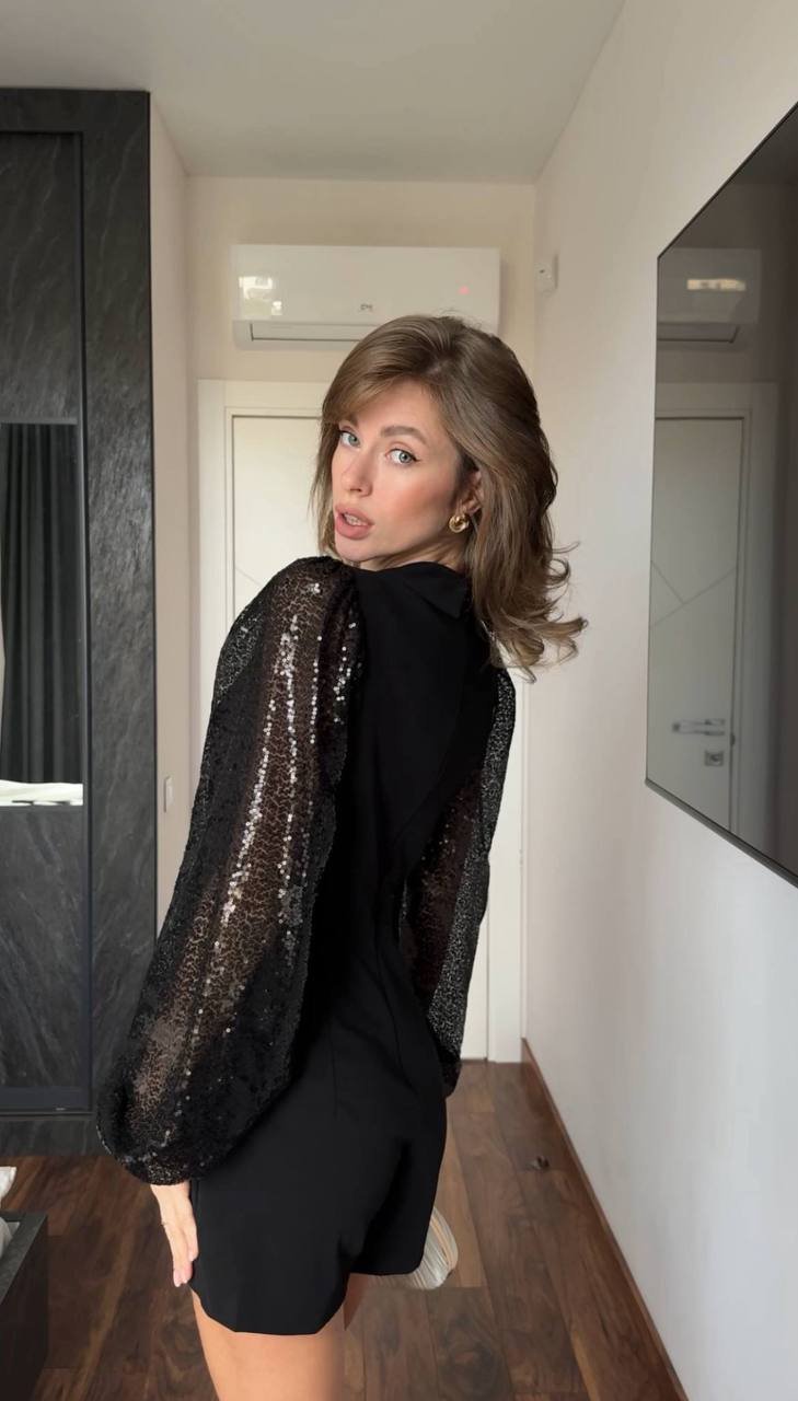 S/M: ilgis 77cm, krūtinė 44cm x 2, liemuo 33cm x 2, rankovės 64cm.