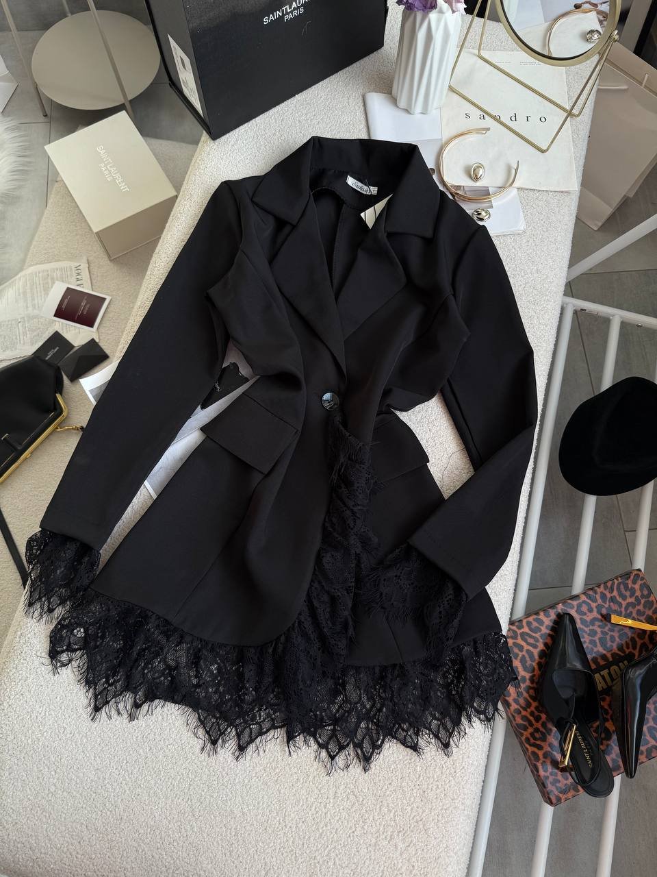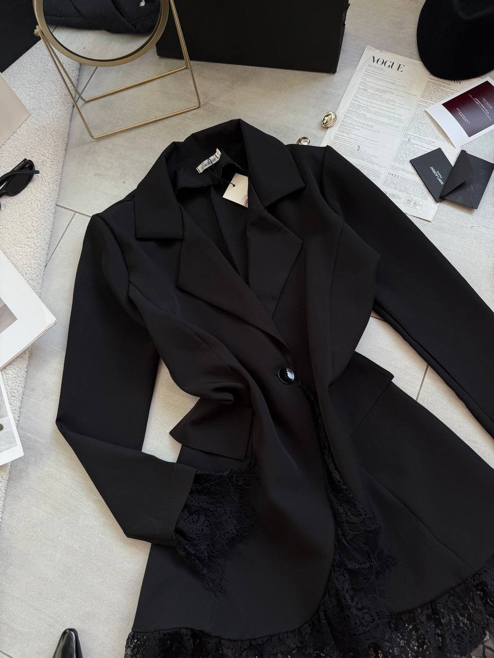 Ilgis 80cm, krūtinė 51cm x 2, pečiai 40.5cm, rankovės 62cm.