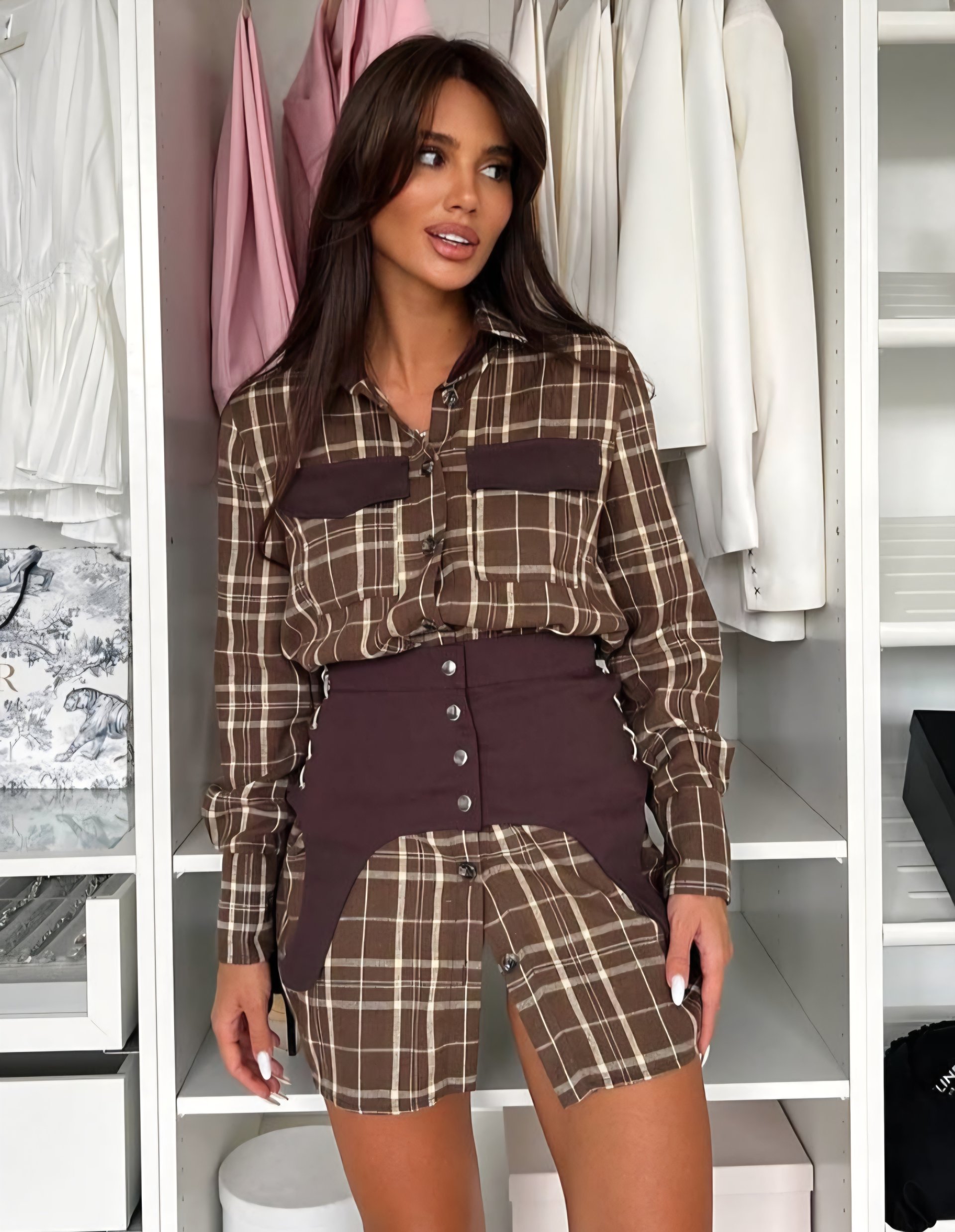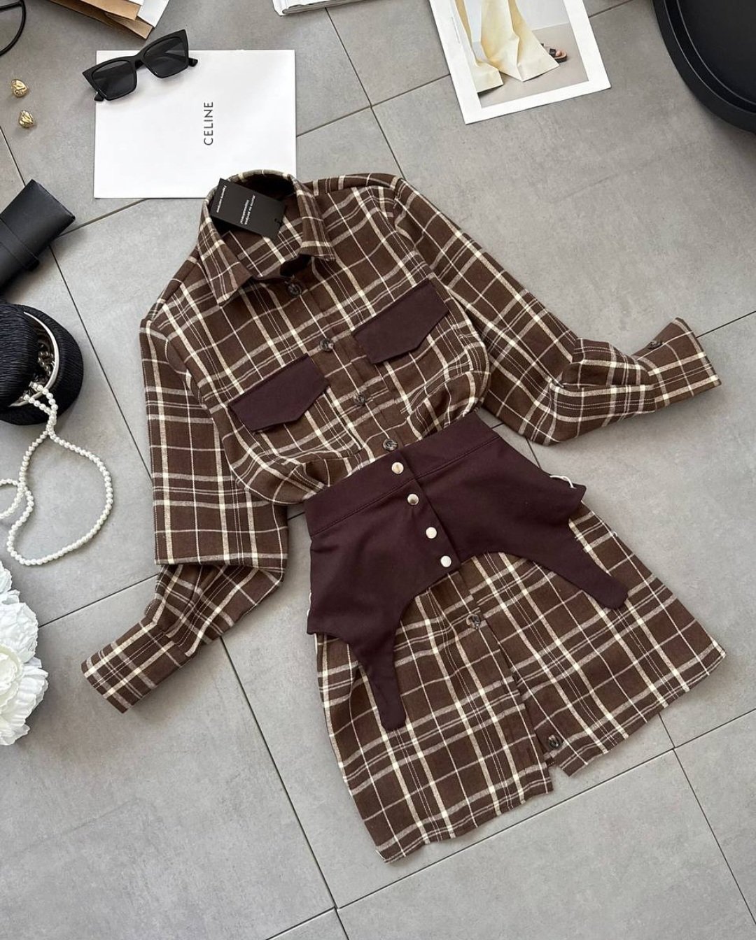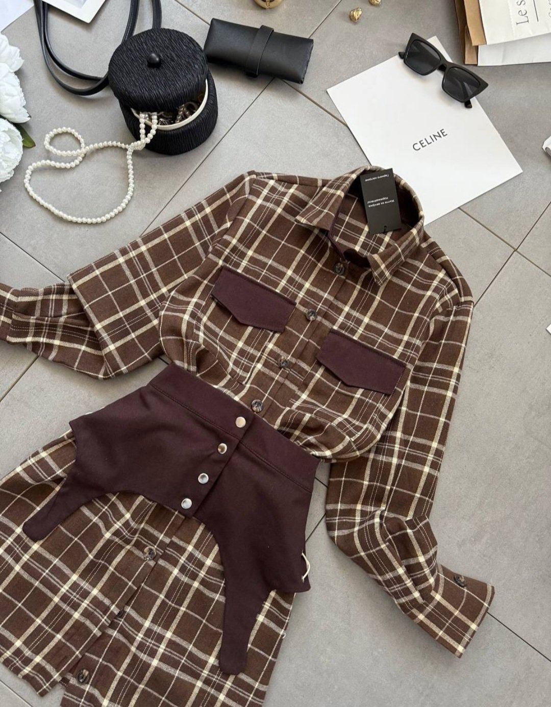 Dviejų dalių suknelė. Tiesaus kirpimo suknelė. Ilgos rankovės. Užsegama sagomis. Abi suknelės dalis galite dėvėti ir atskirai. Medvilnė, poliesteris. Turime dviejų spalvų.