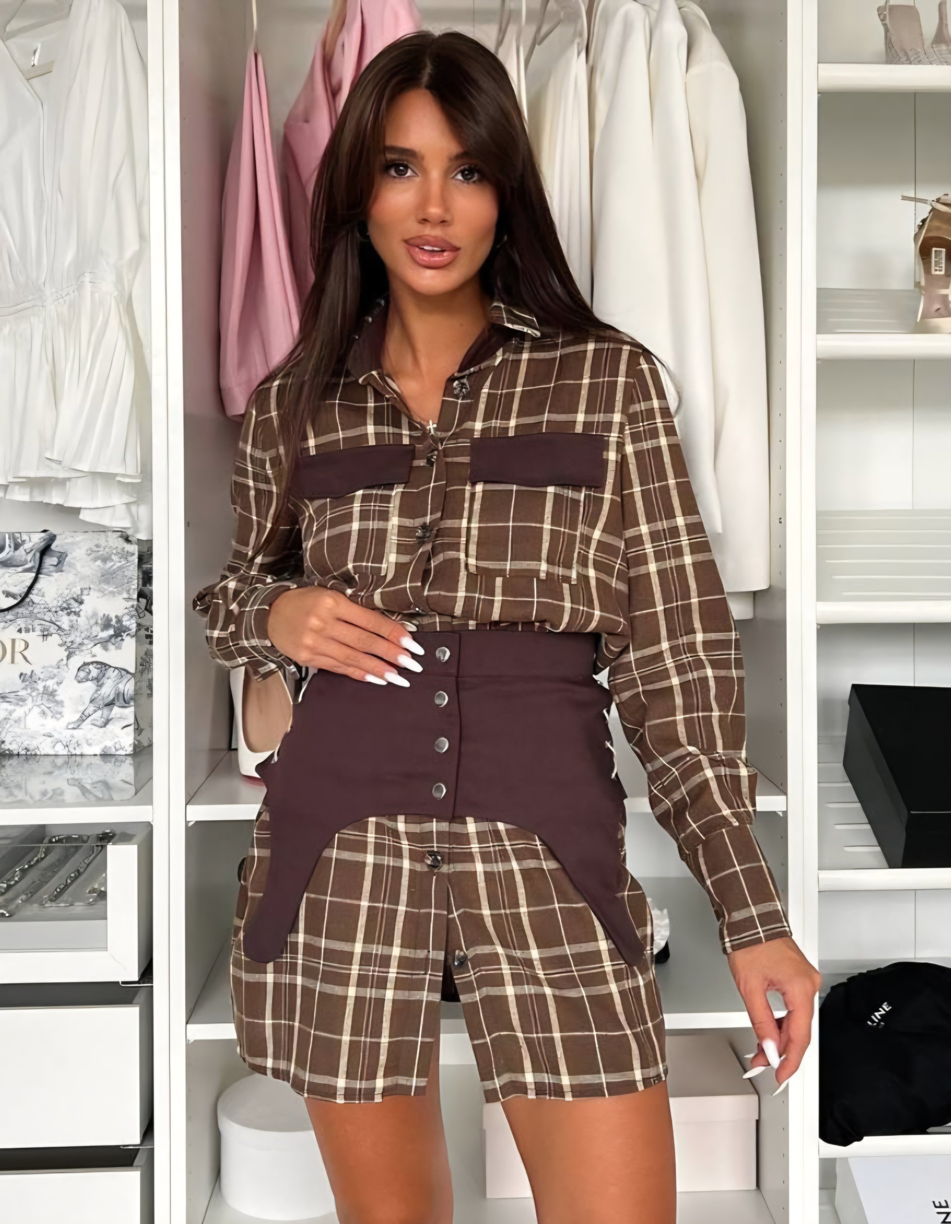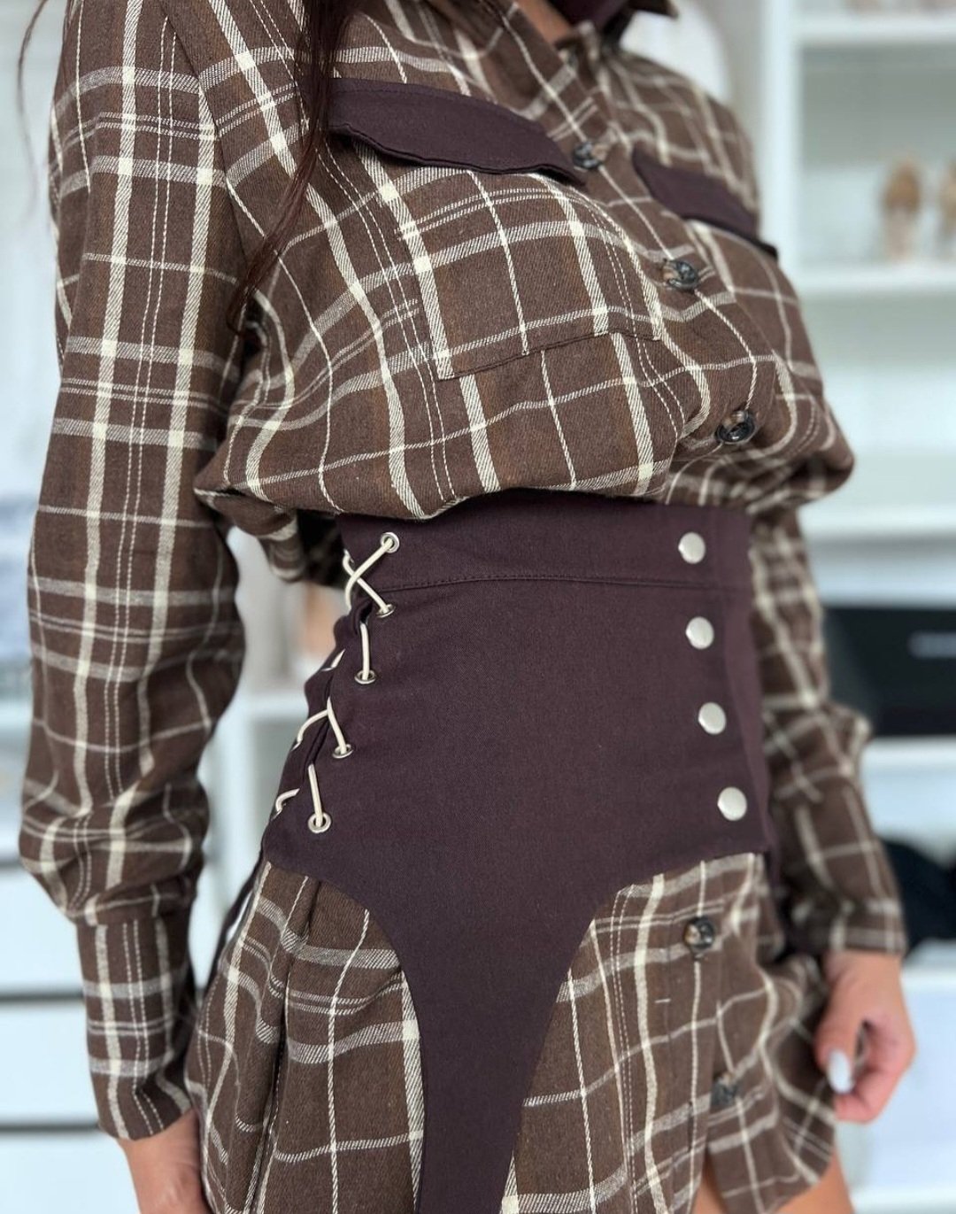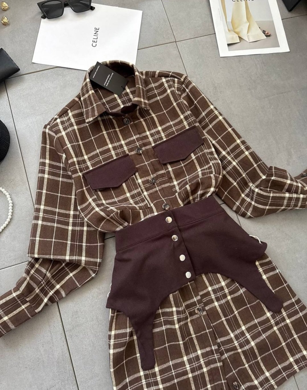 Dviejų dalių suknelė. Tiesaus kirpimo suknelė. Ilgos rankovės. Užsegama sagomis. Abi suknelės dalis galite dėvėti ir atskirai. Medvilnė, poliesteris. Turime dviejų spalvų.