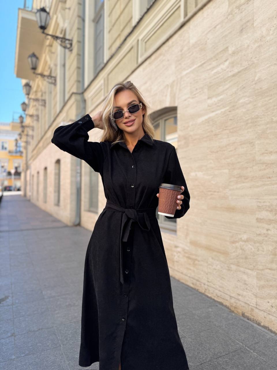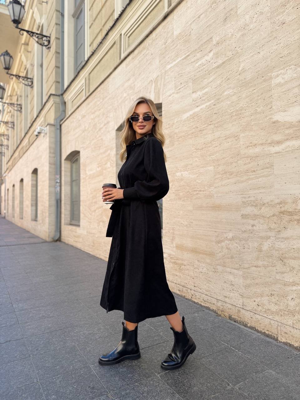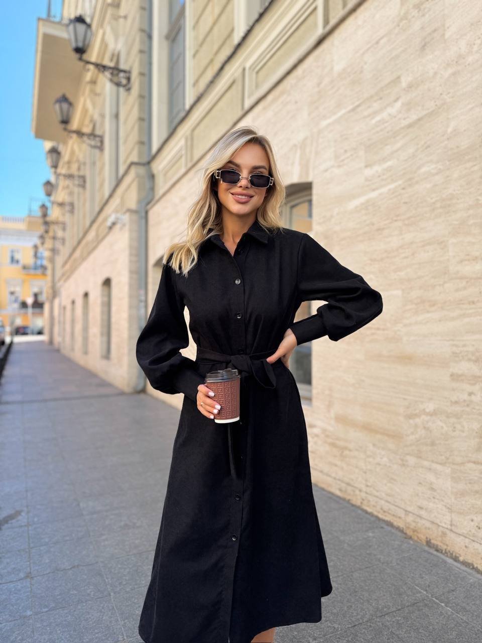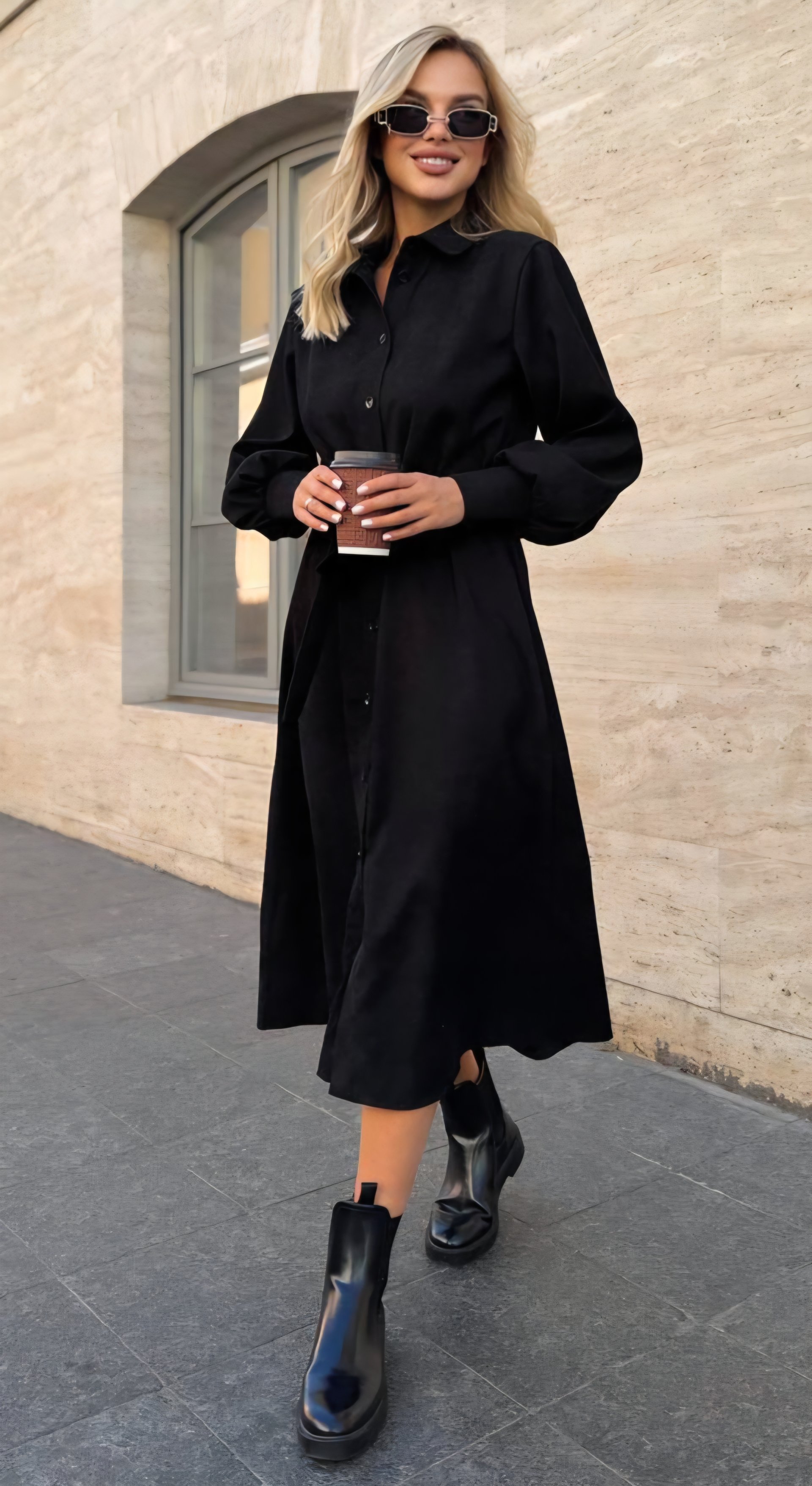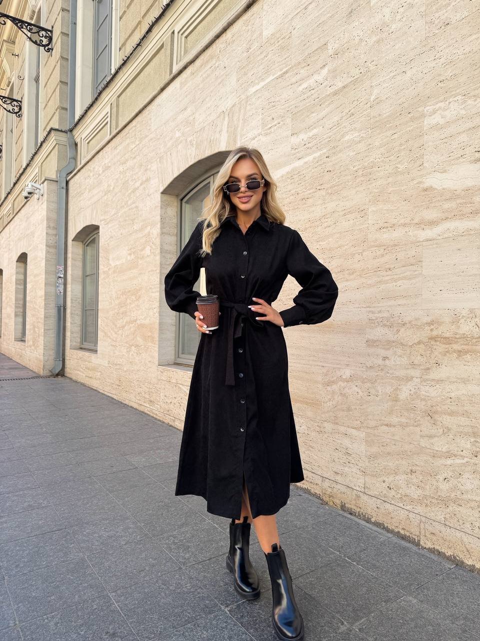 Ilga suknelė. Per visą ilgį užsegama sagomis. Per liemenį rišasi dirželis. Ilgos rankovės. Turime dviejų spalvų: juodos, tamsiai rudos spalvos.