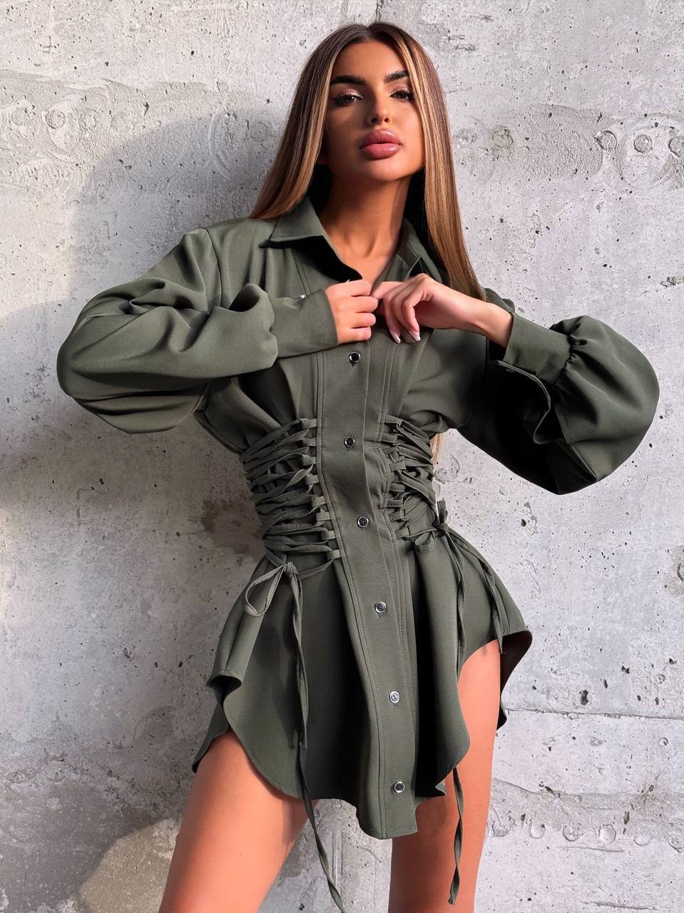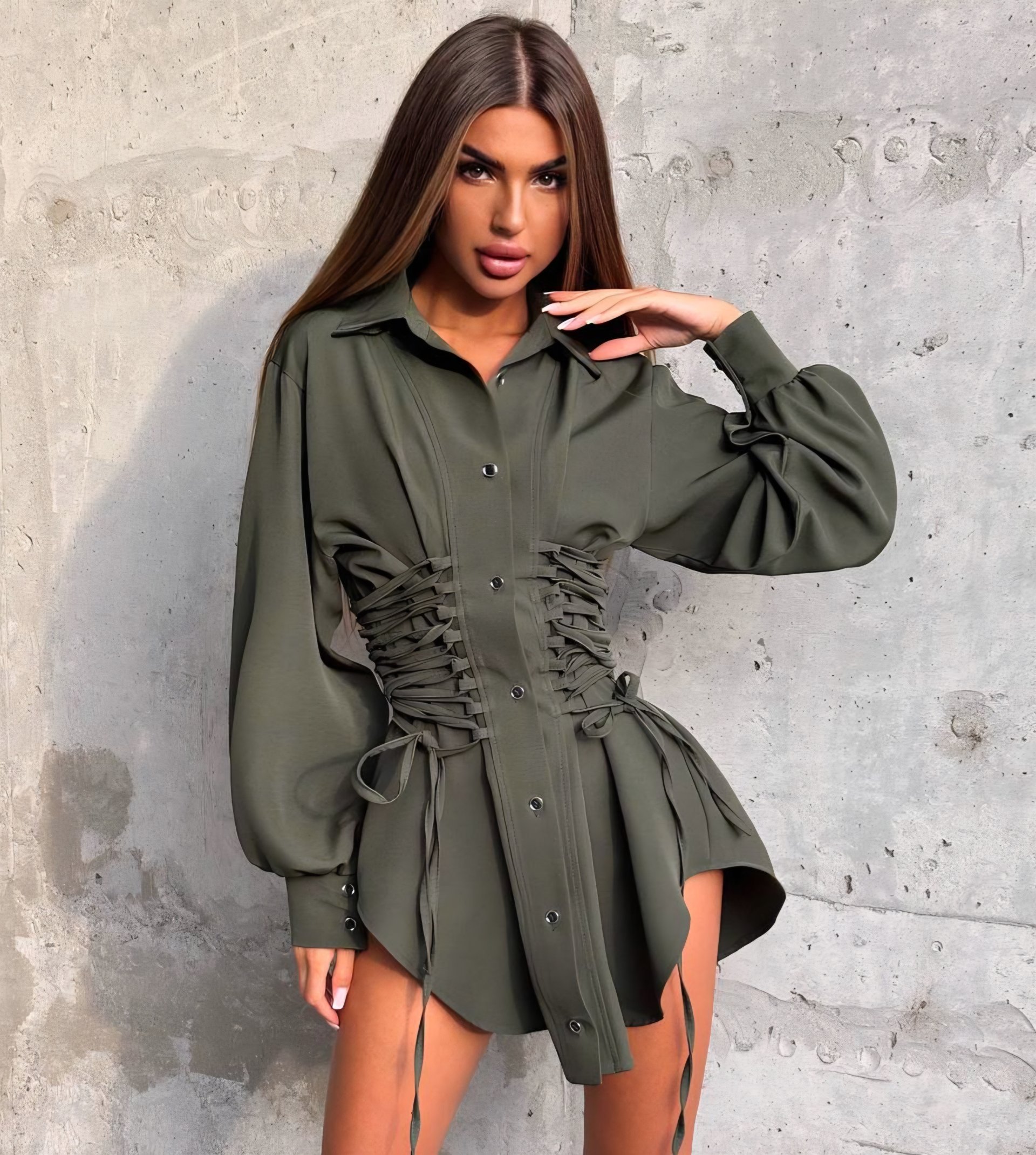 Išskirtinio dizaino marškiniai. Užsegami sagomis. Šonuose susivarsto. Ilgos rankovės. Turime dviejų spalvų: chaki, juodos.