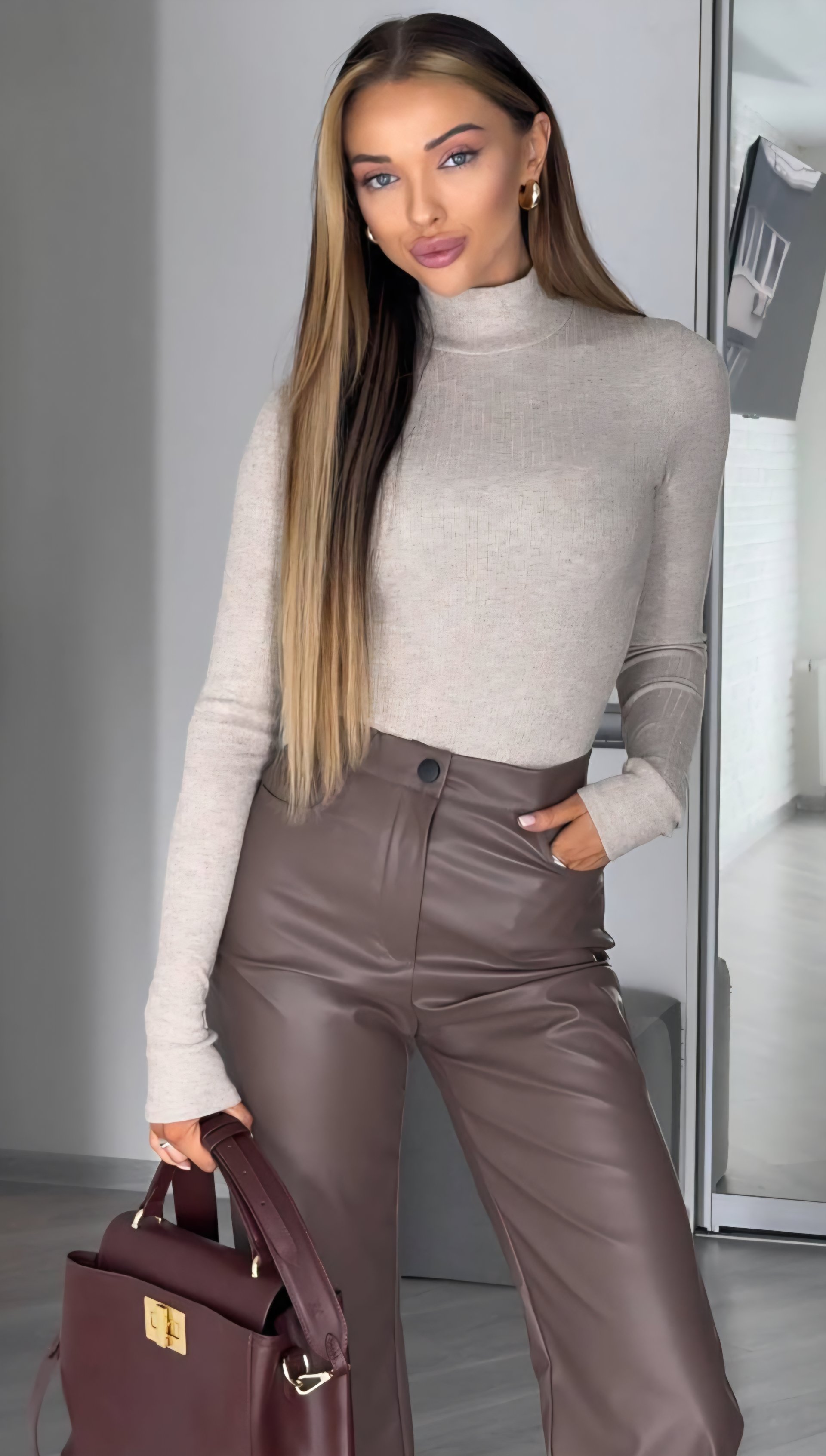 Eco odos kelnės. SU PAŠILTINIMU. Aukšto liemens. Užsegamos saga ir užtrauktuku. Yra kišenės.