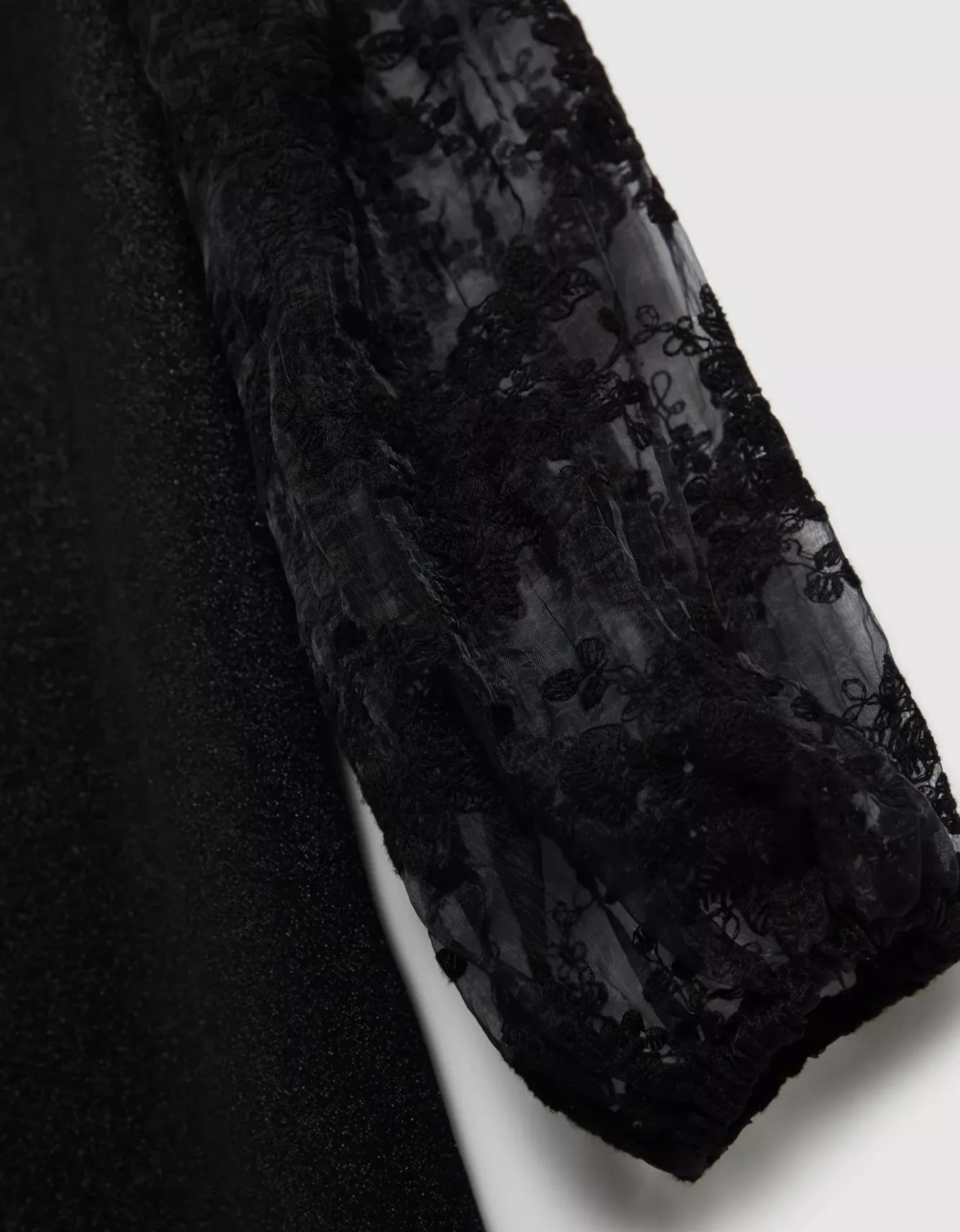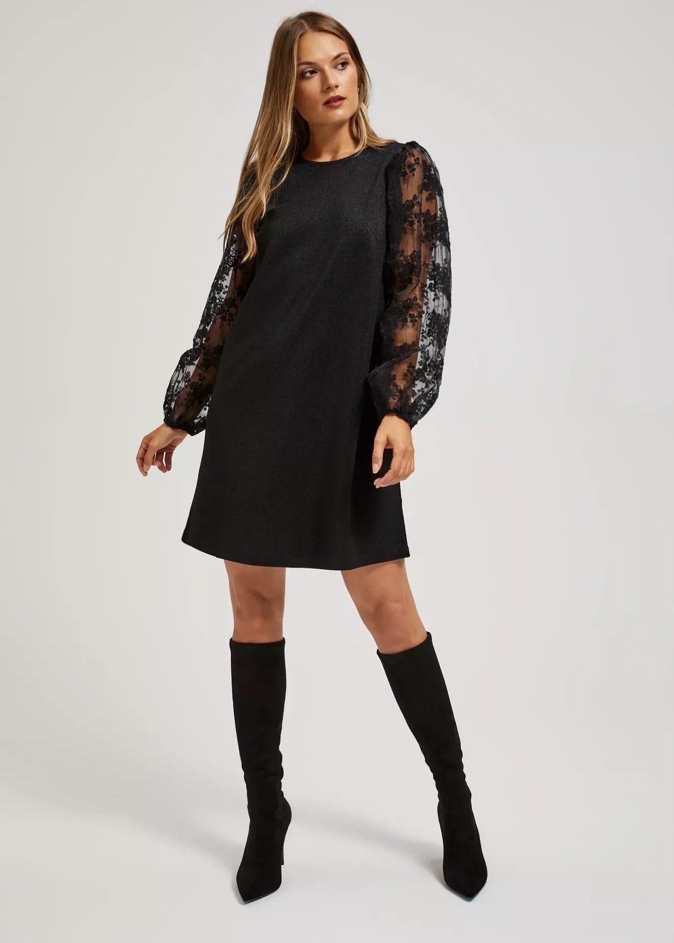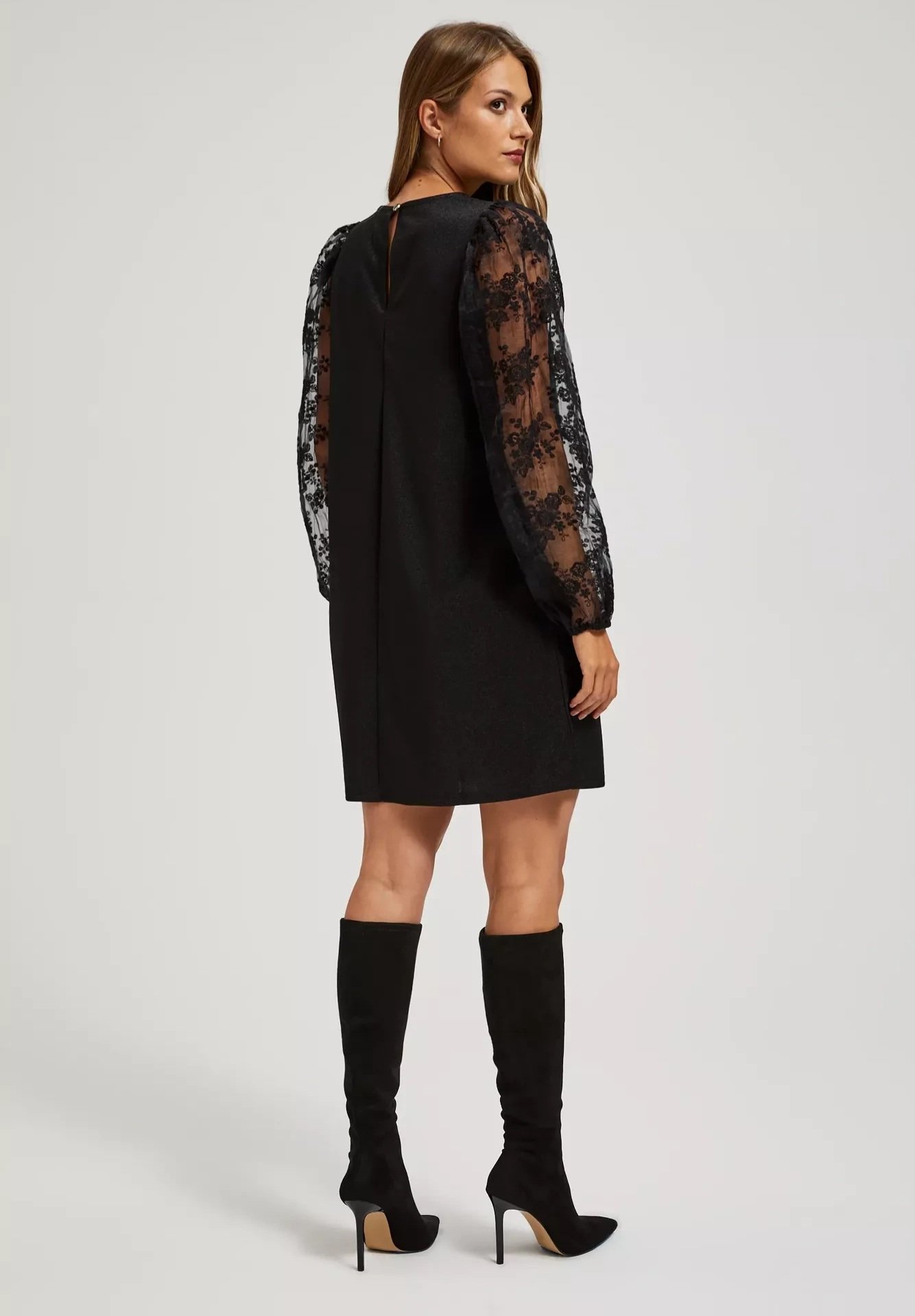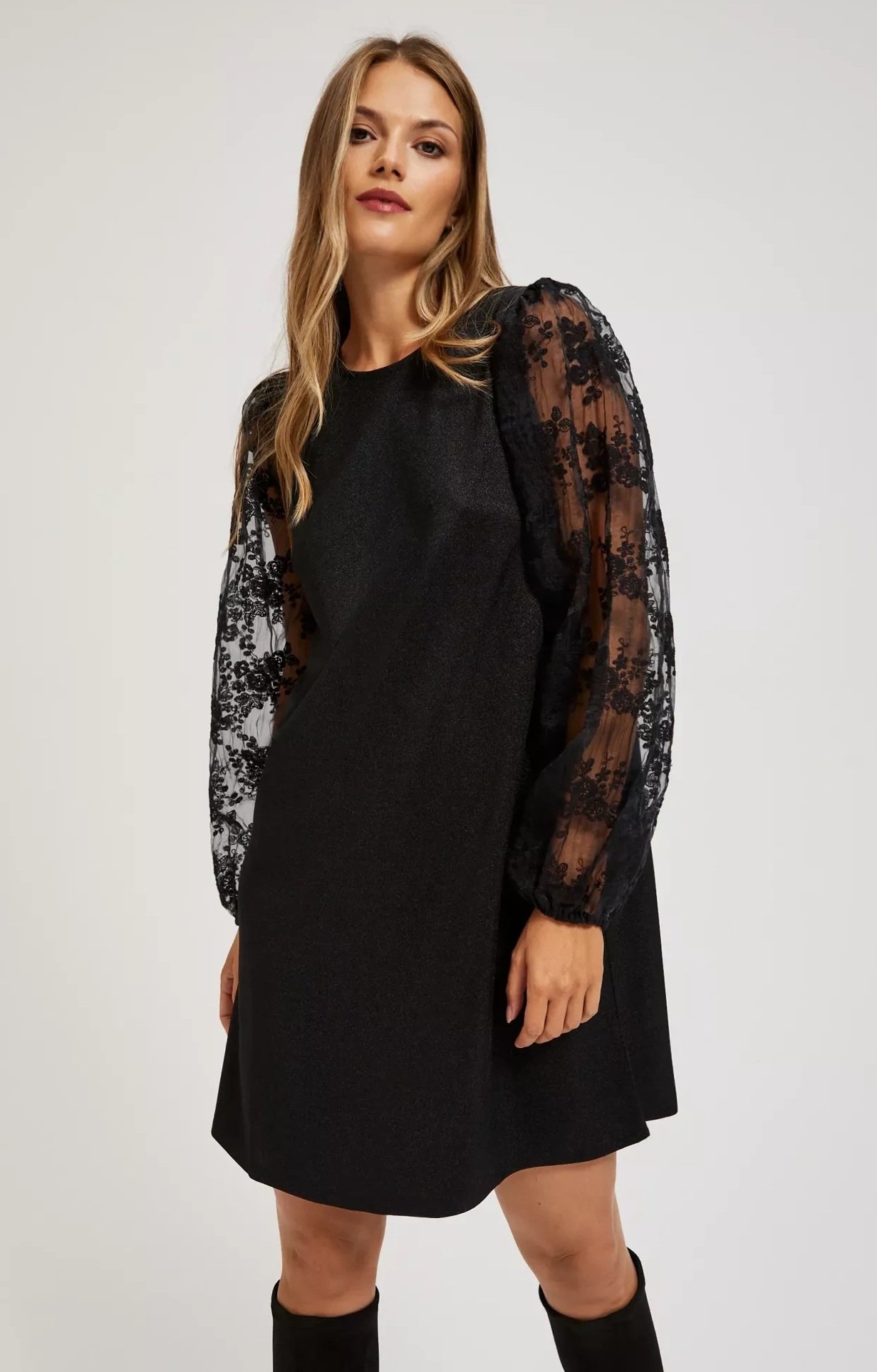 Puošni suknelė. Išskirtinio dizaino rankovės. Laisvesnio modelio. Juoda spalva.