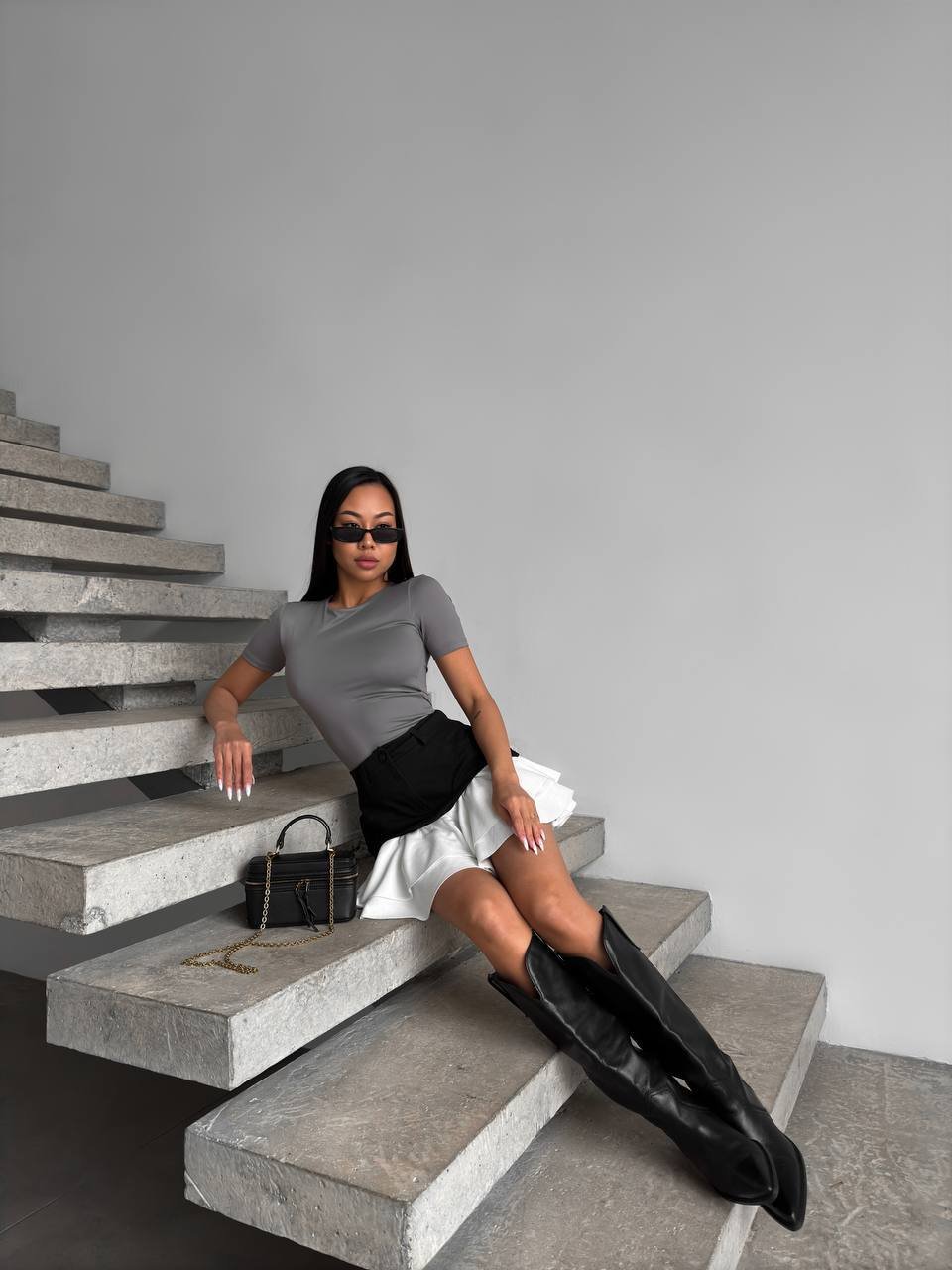 Išskirtinio dizaino sijonas. Aukštas liemuo. Viršutinė dalis medvilnė, balta dalis poliesteris. Turime dviejų spalvų.