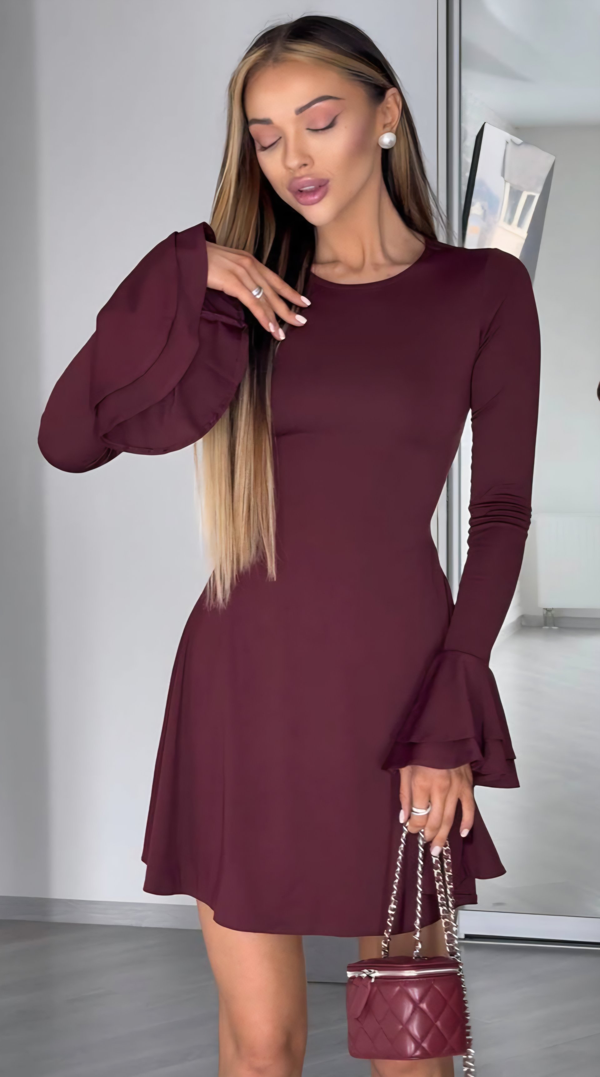 Išskirtinio dizaino suknelė. Ilgos rankovės. Nugaroje suvarstoma, todėl krūtinė ir liemuo reguliuojasi. Poliesteris. Turime dviejų spalvų.