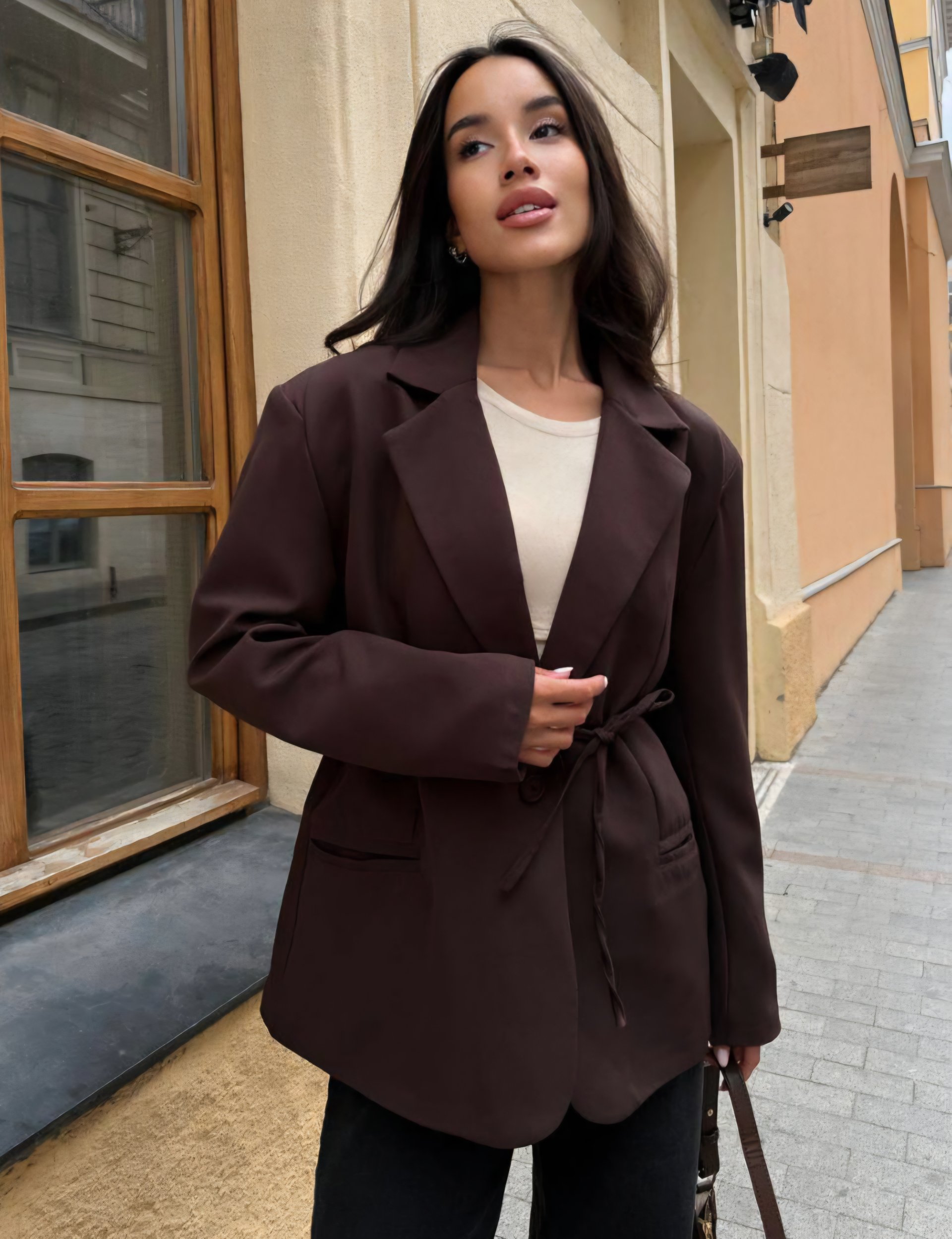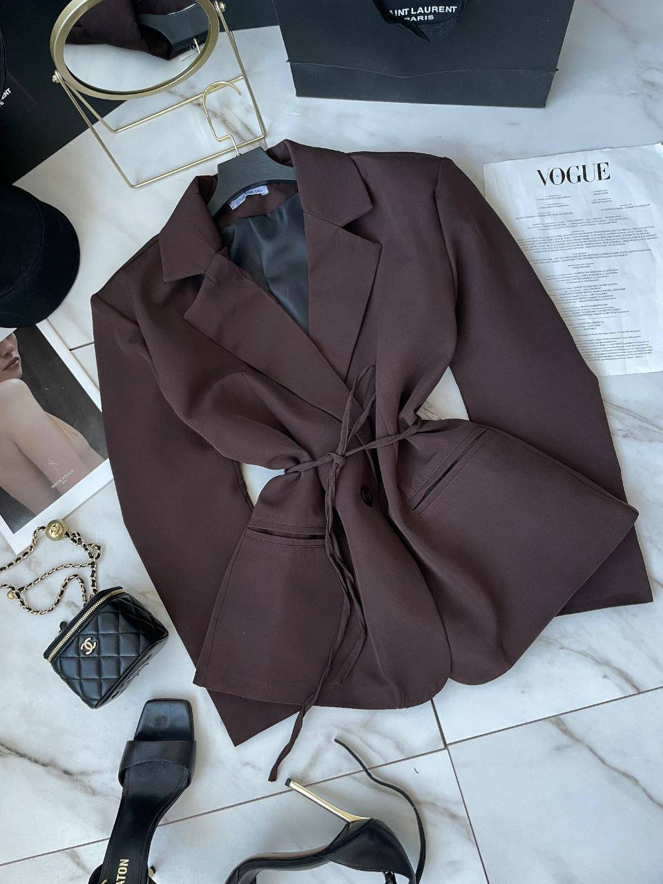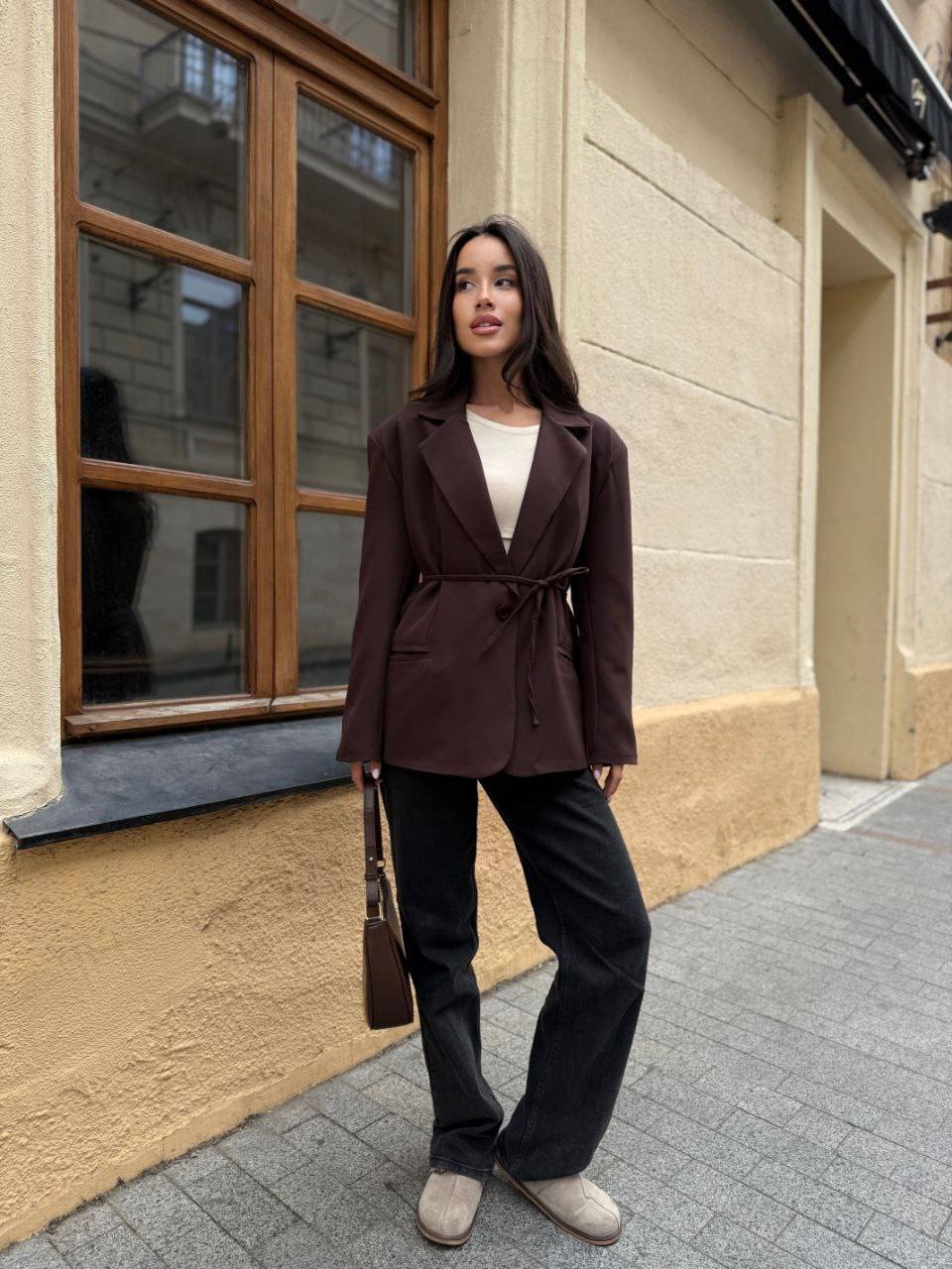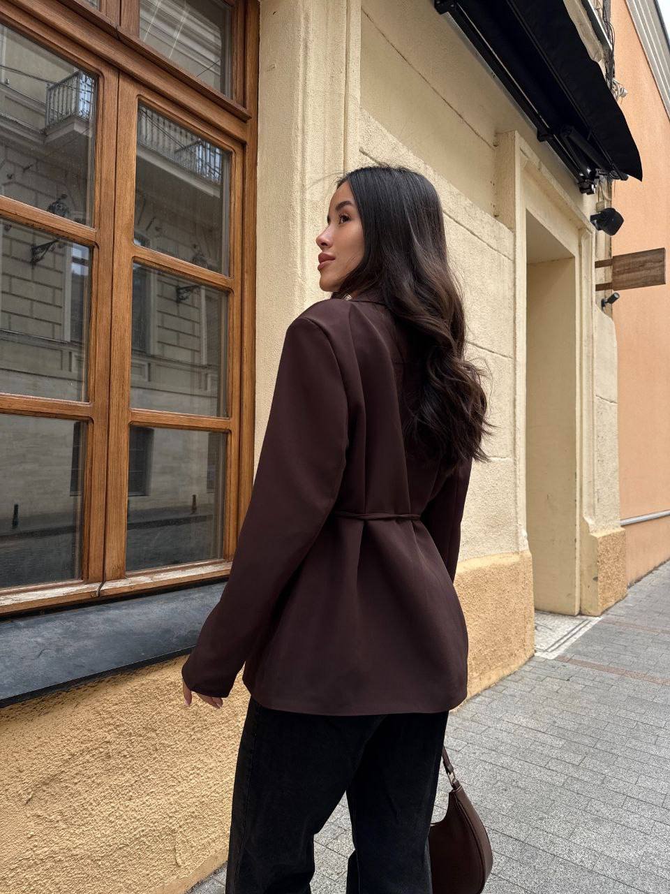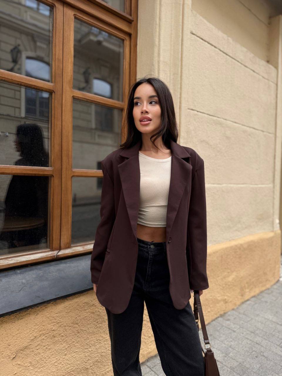 Oversize stiliaus švarkas. Ilgos rankovės. Užsegamas saga. Su pamušalu, pečiai su pakietinimais. Turime dviejų spalvų: rudos, juodos.