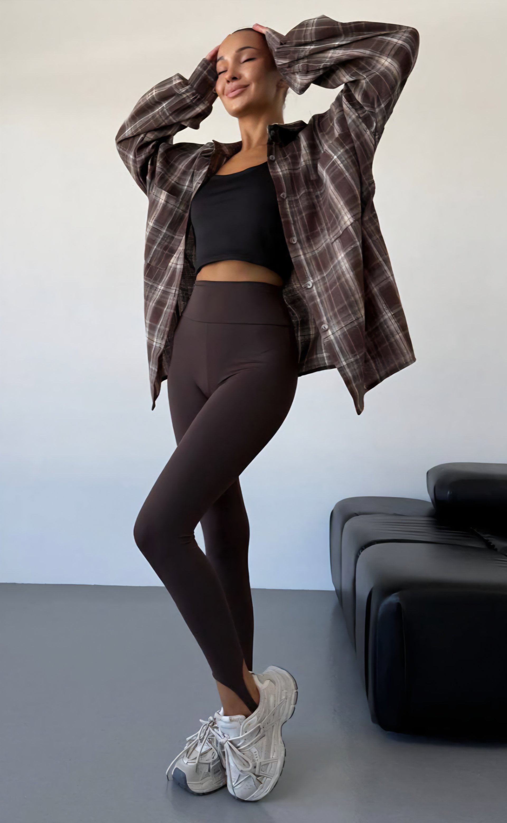 Aukšto liemens tamprės. Tamprios medžiagos. Rudos spalvos.